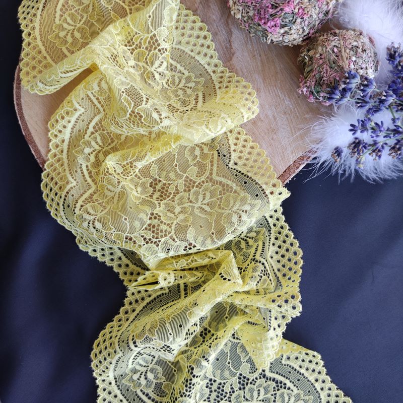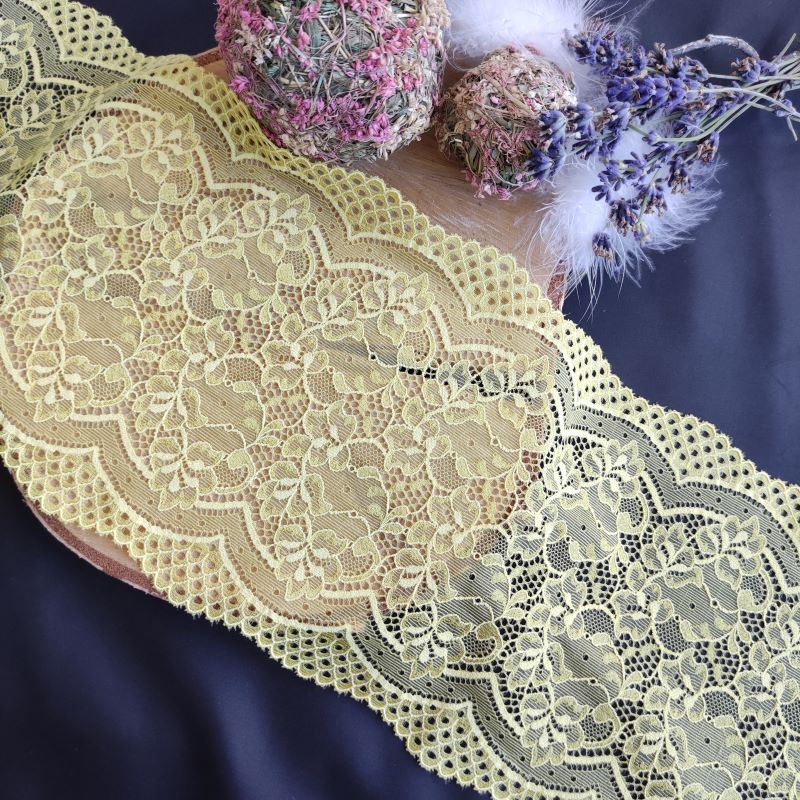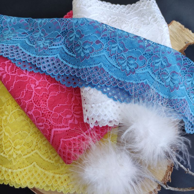 Depending on the quantity, lace fabrics will either be put onto a roll/spool and packed into cartons or, if the quantity is low, they may also be just folded and put into an envelope. The meterage per roll/spool varies depending on the width.