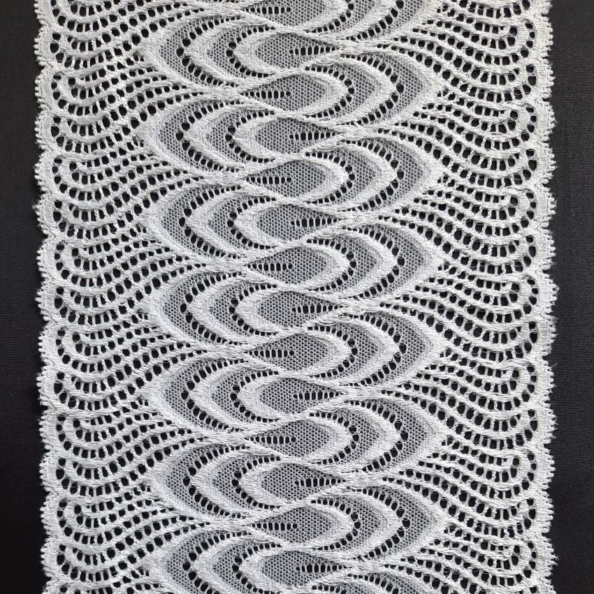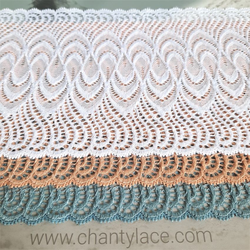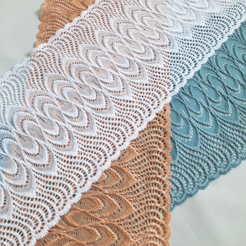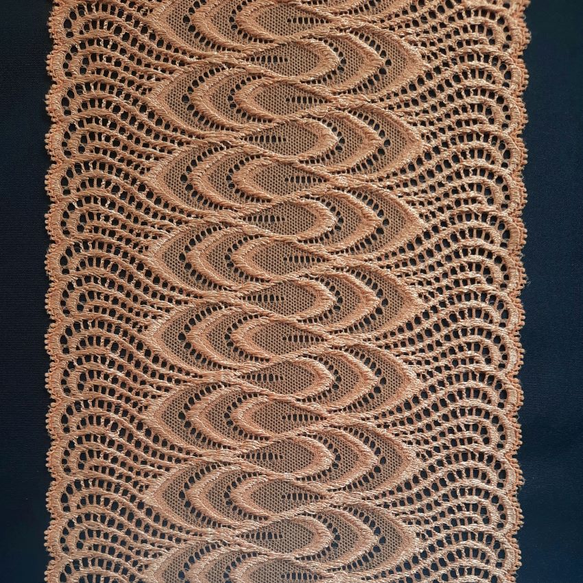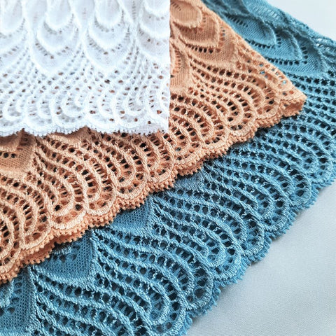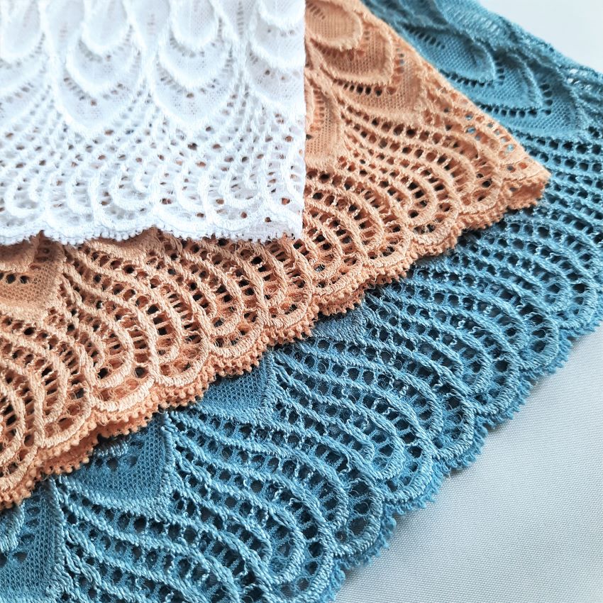Die "Dehnbarkeit" der Breite kommt von den ganzen Löchern eines Spitzendesigns. Damit das Design seine ursprüngliche Form beibehält, dehne die Spitze nicht zu viel beim Nähen, ansonsten gibt es später Falten.