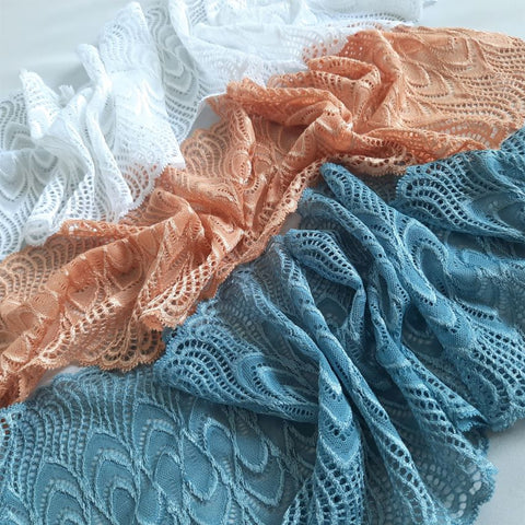 Wenn du interessiert an Spitzentextilien bist, die sich in alle Richtungen dehnen lassen, dann schau dir unsere "Extra dehnbaren" Spitzen an. Diese sind von Natur aus in alle Richtungen dehnbar.