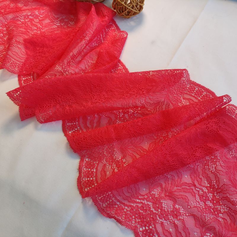 Depending on the quantity, lace fabrics will either be put onto a roll/spool and packed into cartons or, if the quantity is low, they may also be just folded and put into an envelope. The meterage per roll/spool varies depending on the width.