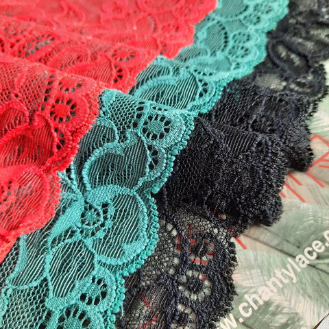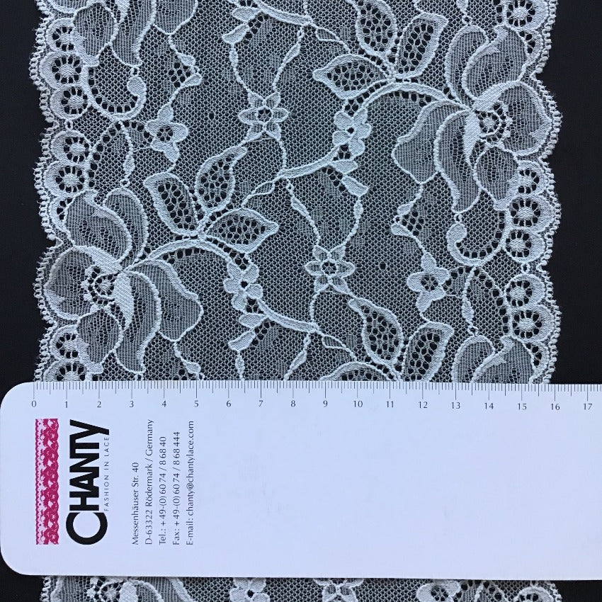 Depending on the quantity, lace fabrics will either be put onto a roll/spool and packed into cartons or, if the quantity is low, they may also be just folded and put into an envelope. The meterage per roll/spool varies depending on the width.