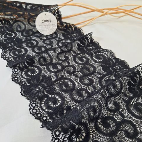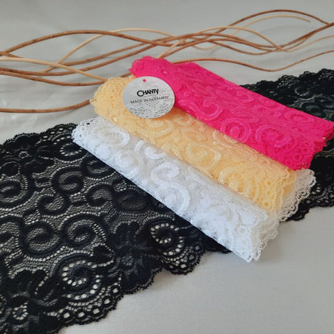 Depending on the quantity, lace fabrics will either be put onto a roll/spool and packed into cartons or, if the quantity is low, they may also be just folded and put into an envelope. The meterage per roll/spool varies depending on the width.