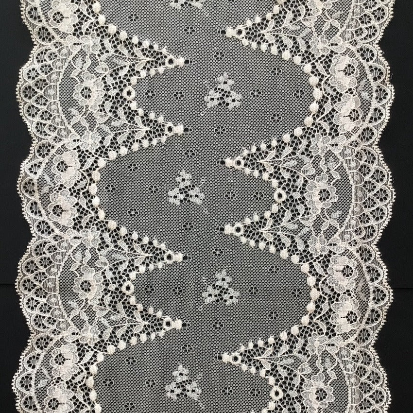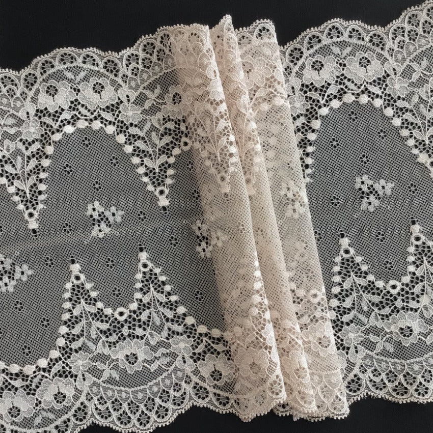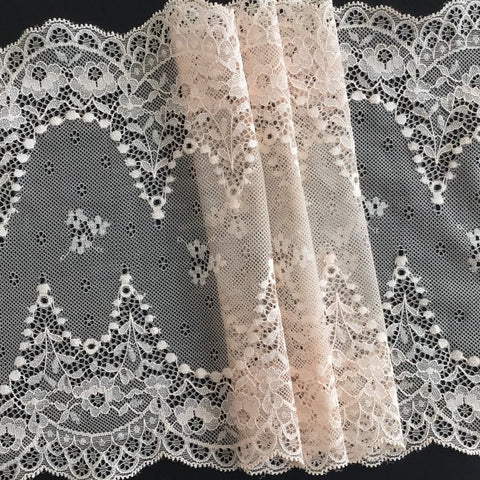 Depending on the quantity, lace fabrics will either be put onto a roll/spool and packed into cartons or, if the quantity is low, they may also be just folded and put into an envelope. The meterage per roll/spool varies depending on the width.