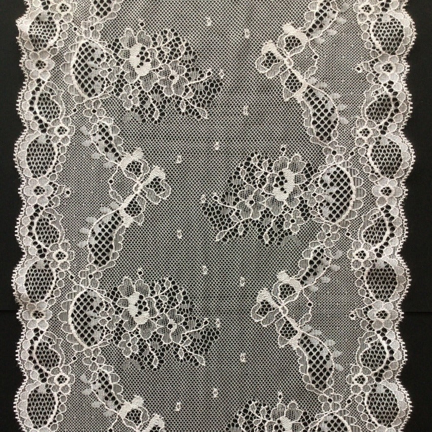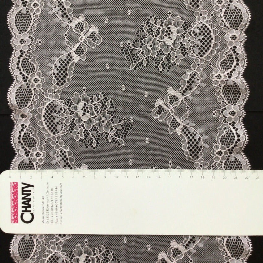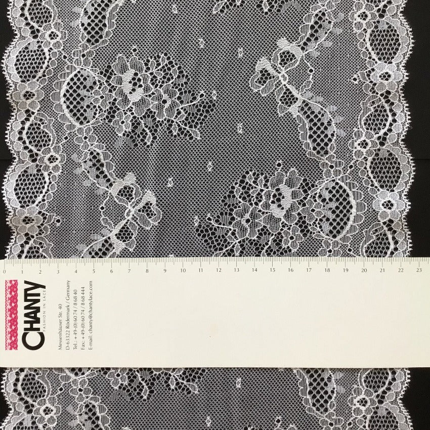 Die "Dehnbarkeit" der Breite kommt von den ganzen Löchern eines Spitzendesigns. Damit das Design seine ursprüngliche Form beibehält, dehne die Spitze nicht zu viel beim Nähen, ansonsten gibt es später Falten.