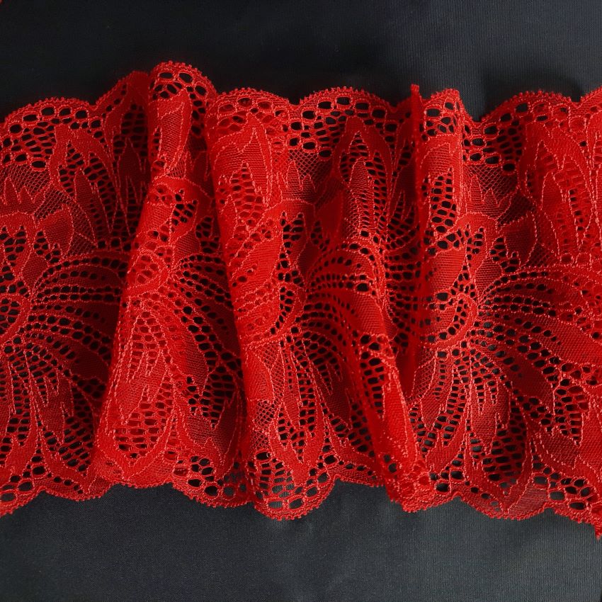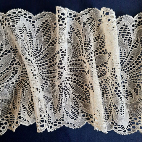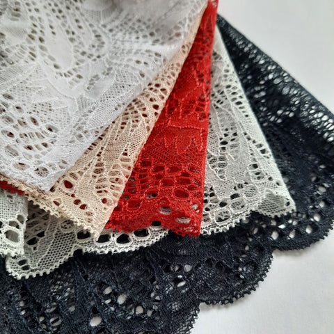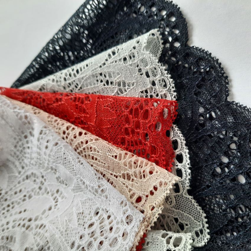 Depending on the quantity, lace fabrics will either be put onto a roll/spool and packed into cartons or, if the quantity is low, they may also be just folded and put into an envelope. The meterage per roll/spool varies depending on the width.