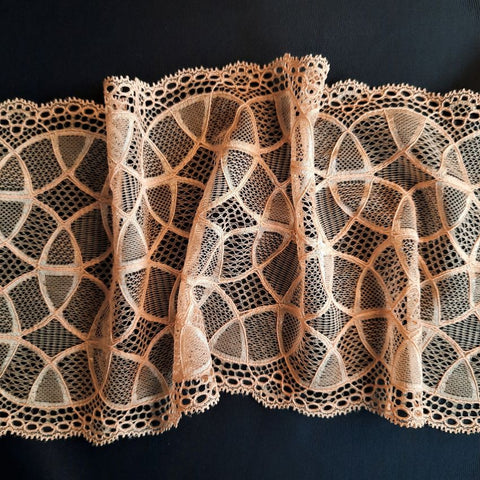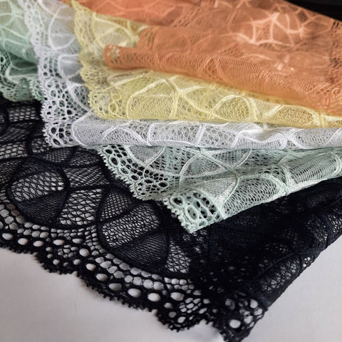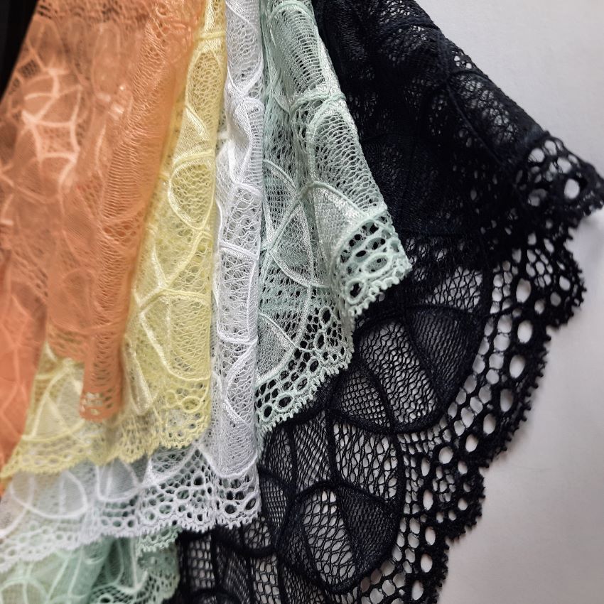 Depending on the quantity, lace fabrics will either be put onto a roll/spool and packed into cartons or, if the quantity is low, they may also be just folded and put into an envelope. The meterage per roll/spool varies depending on the width.