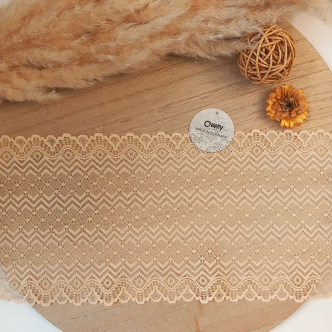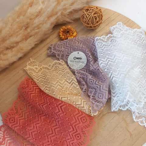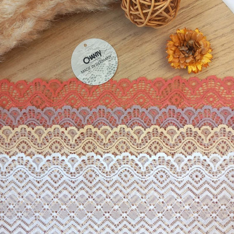 Depending on the quantity, lace fabrics will either be put onto a roll/spool and packed into cartons or, if the quantity is low, they may also be just folded and put into an envelope. The meterage per roll/spool varies depending on the width.