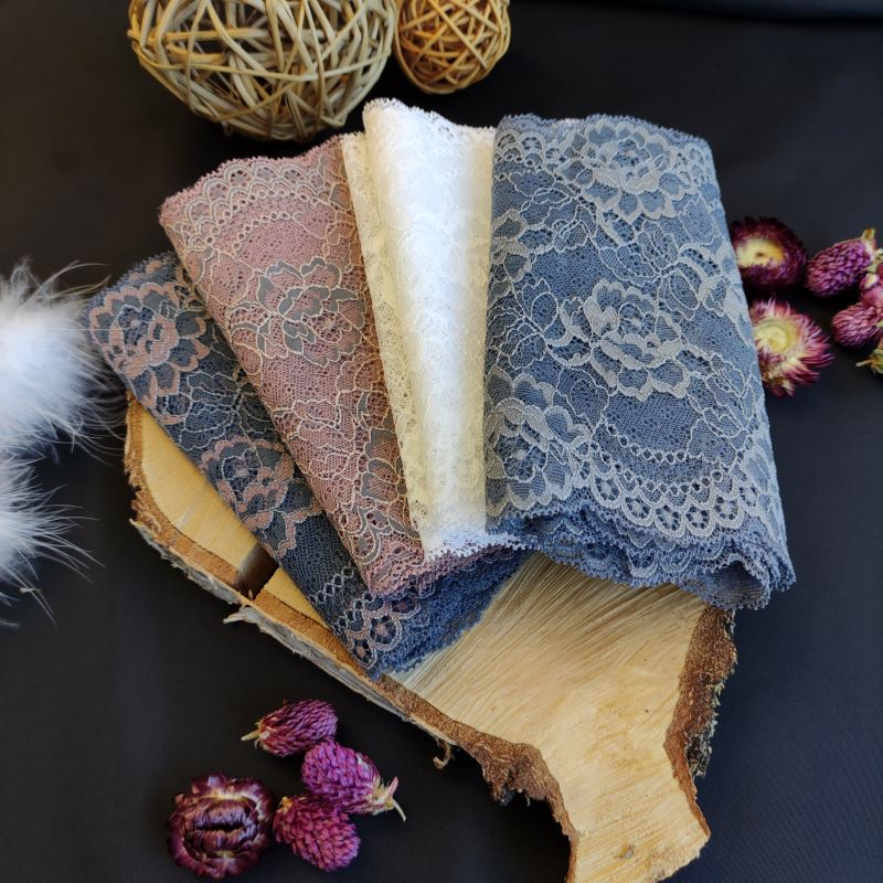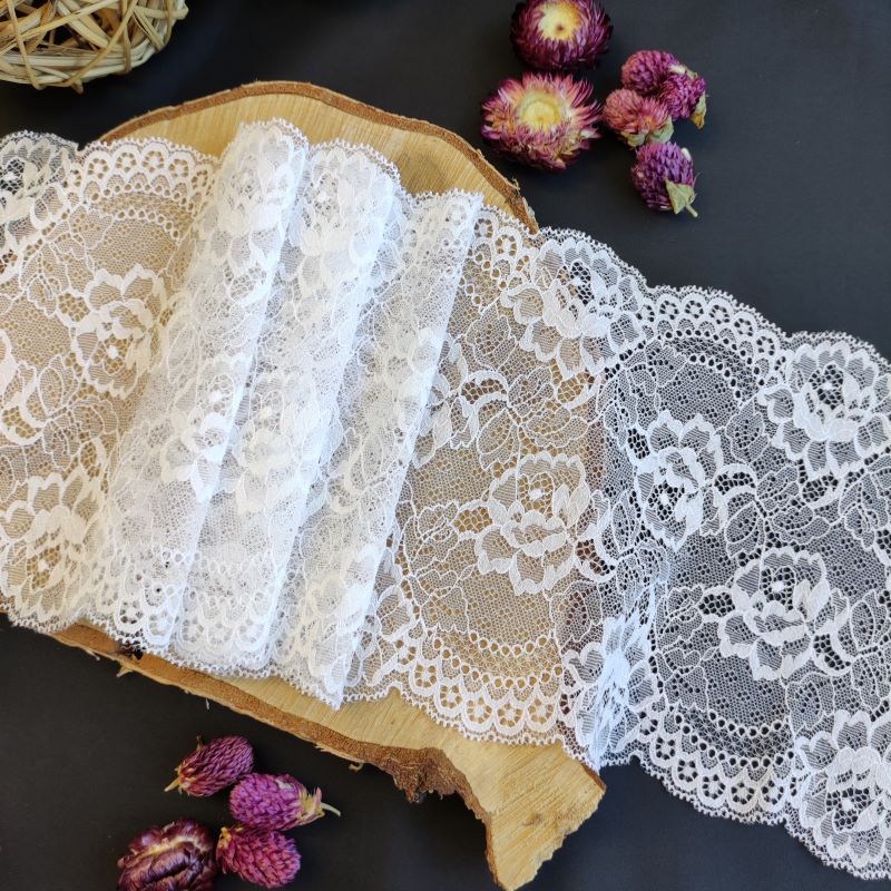 Depending on the quantity, lace fabrics will either be put onto a roll/spool and packed into cartons or, if the quantity is low, they may also be just folded and put into an envelope. The meterage per roll/spool varies depending on the width.