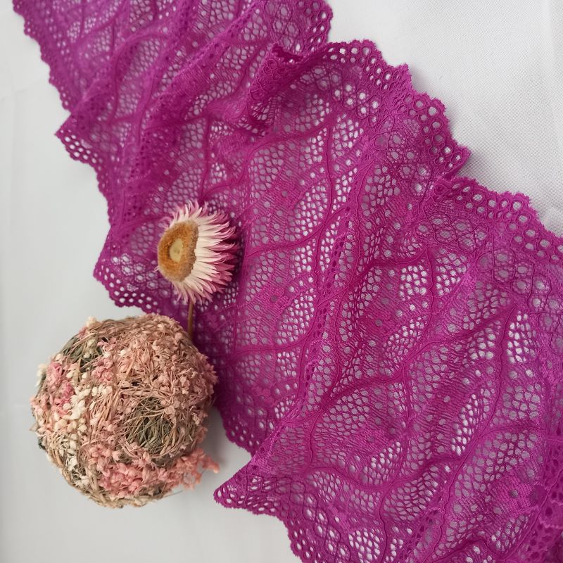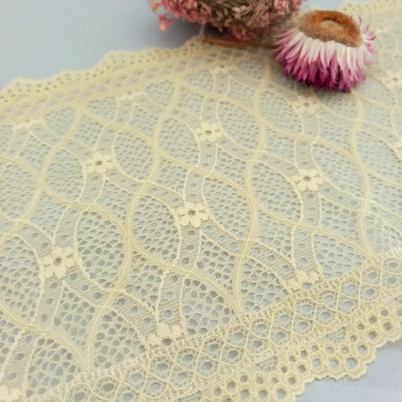 Depending on the quantity, lace fabrics will either be put onto a roll/spool and packed into cartons or, if the quantity is low, they may also be just folded and put into an envelope. The meterage per roll/spool varies depending on the width.