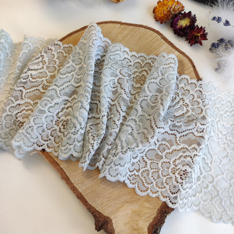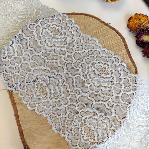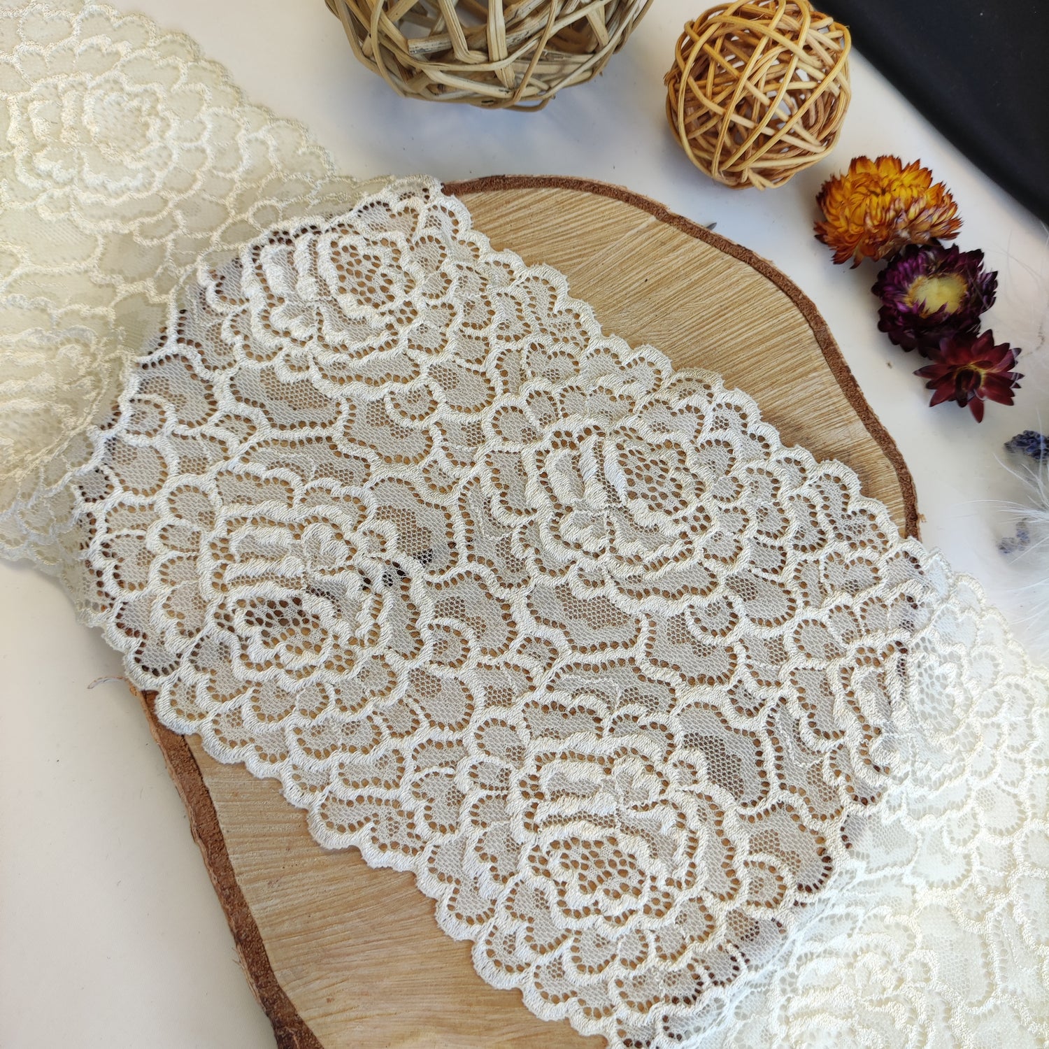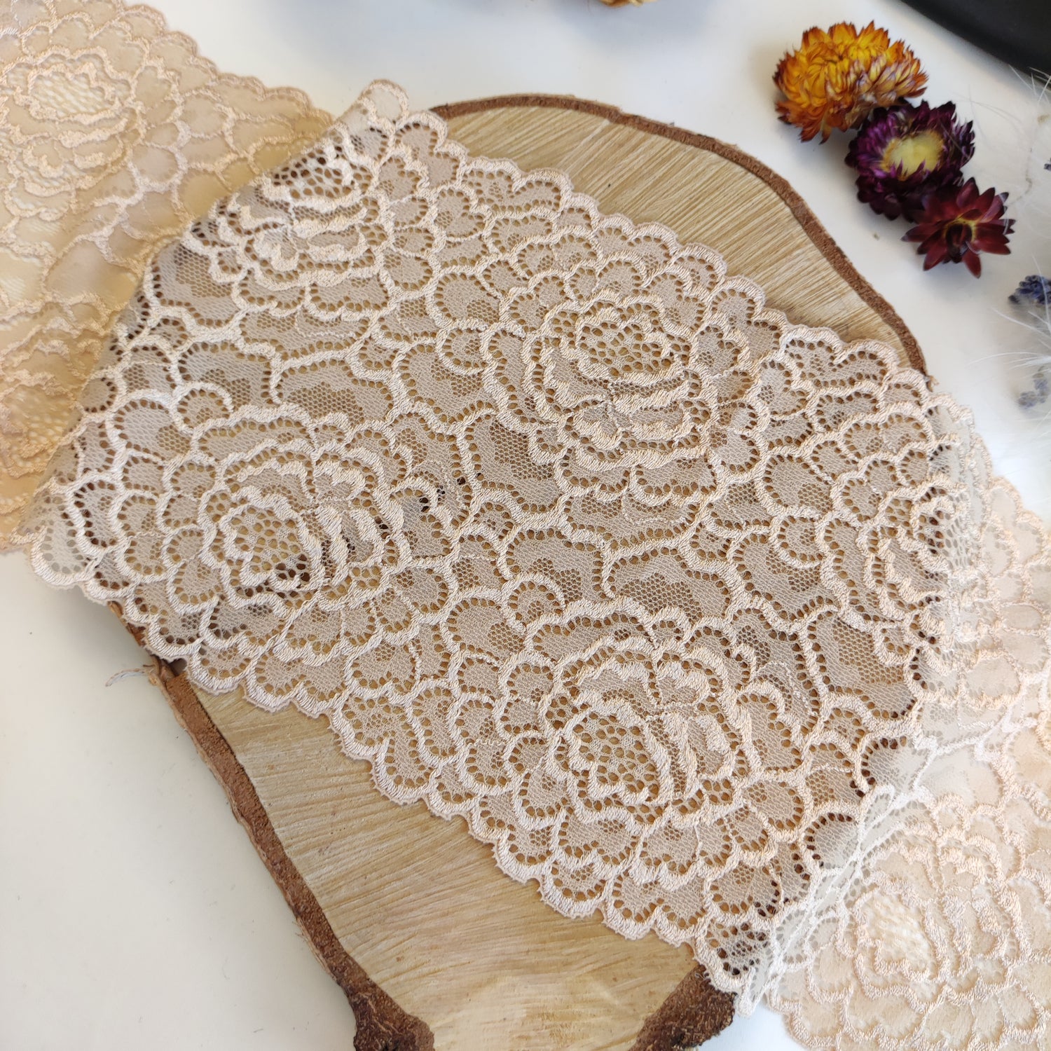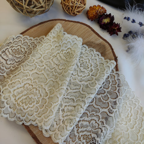 Depending on the quantity, lace fabrics will either be put onto a roll/spool and packed into cartons or, if the quantity is low, they may also be just folded and put into an envelope. The meterage per roll/spool varies depending on the width.