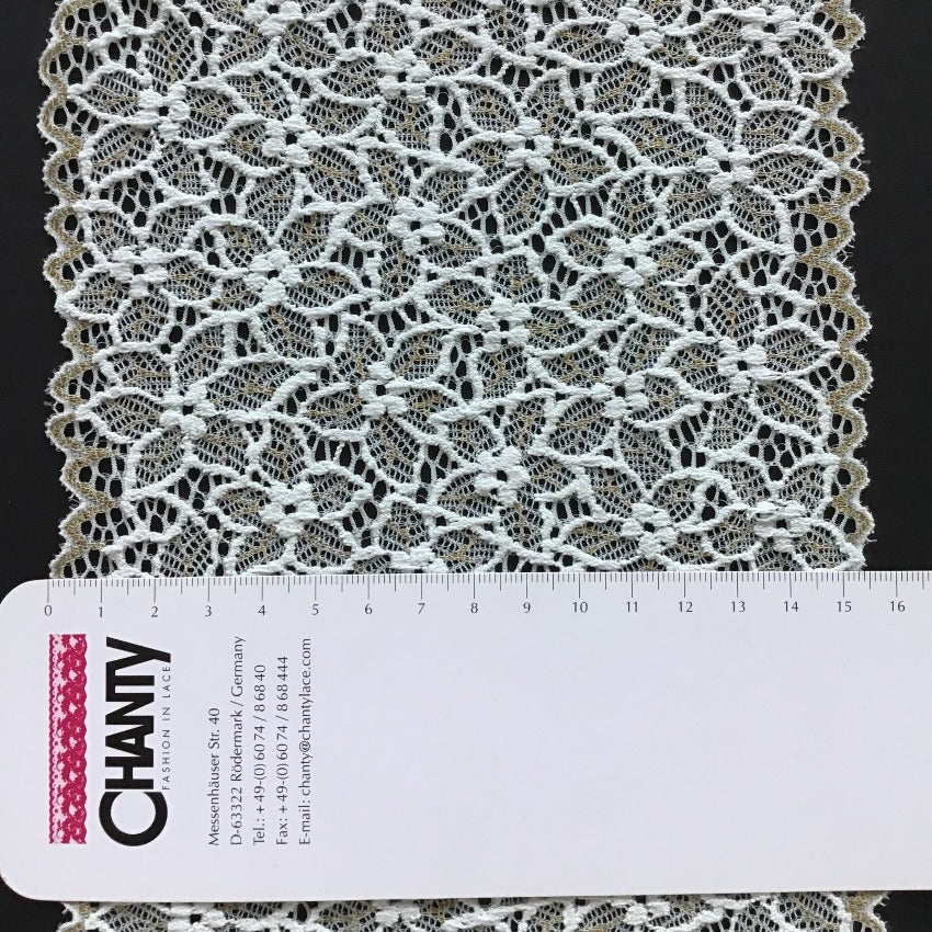 Depending on the quantity, lace fabrics will either be put onto a roll/spool and packed into cartons or, if the quantity is low, they may also be just folded and put into an envelope. The meterage per roll/spool varies depending on the width.