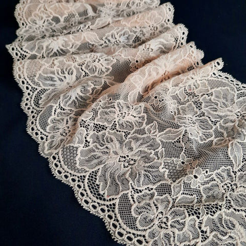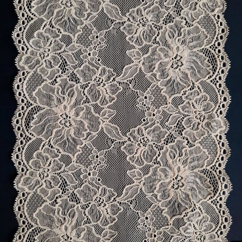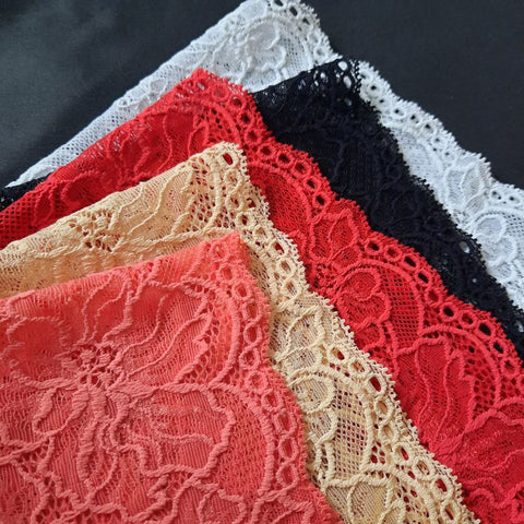 Depending on the quantity, lace fabrics will either be put onto a roll/spool and packed into cartons or, if the quantity is low, they may also be just folded and put into an envelope. The meterage per roll/spool varies depending on the width.
