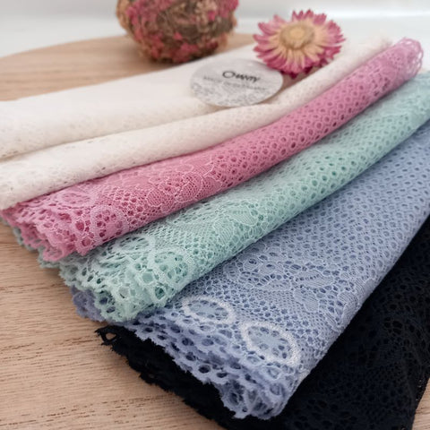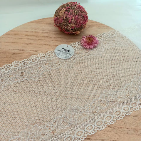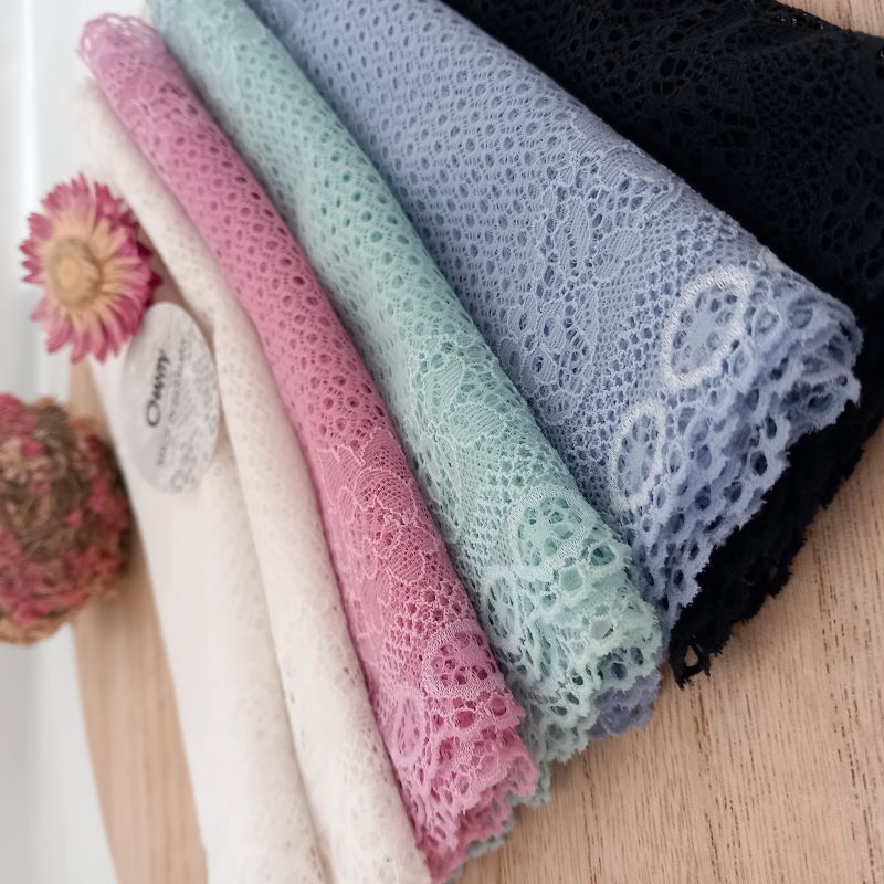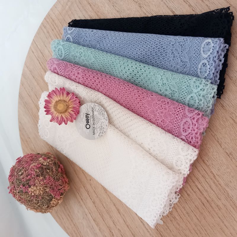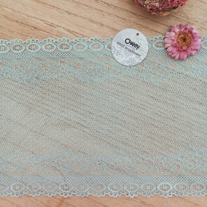 Depending on the quantity, lace fabrics will either be put onto a roll/spool and packed into cartons or, if the quantity is low, they may also be just folded and put into an envelope. The meterage per roll/spool varies depending on the width.