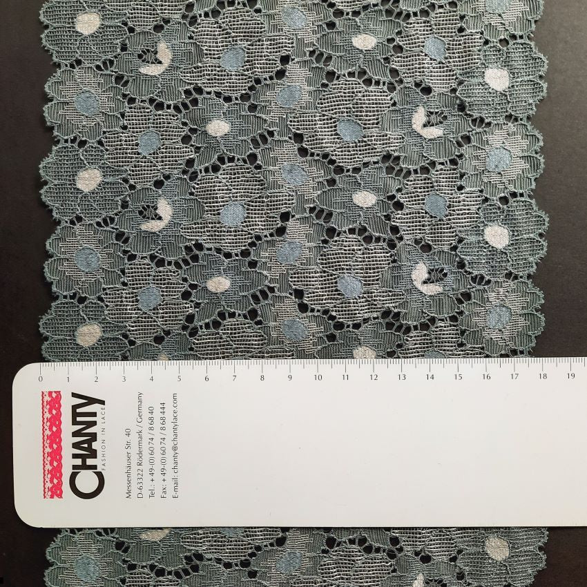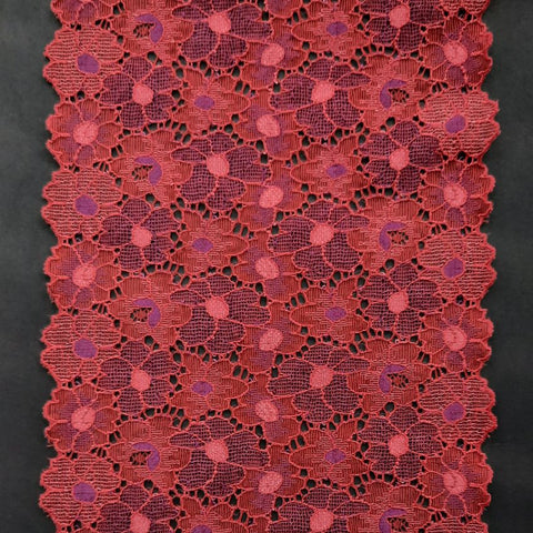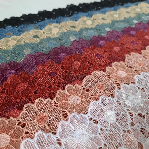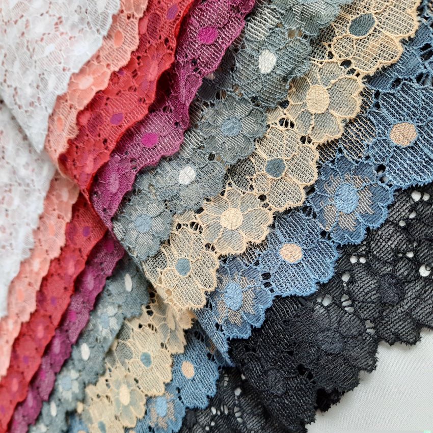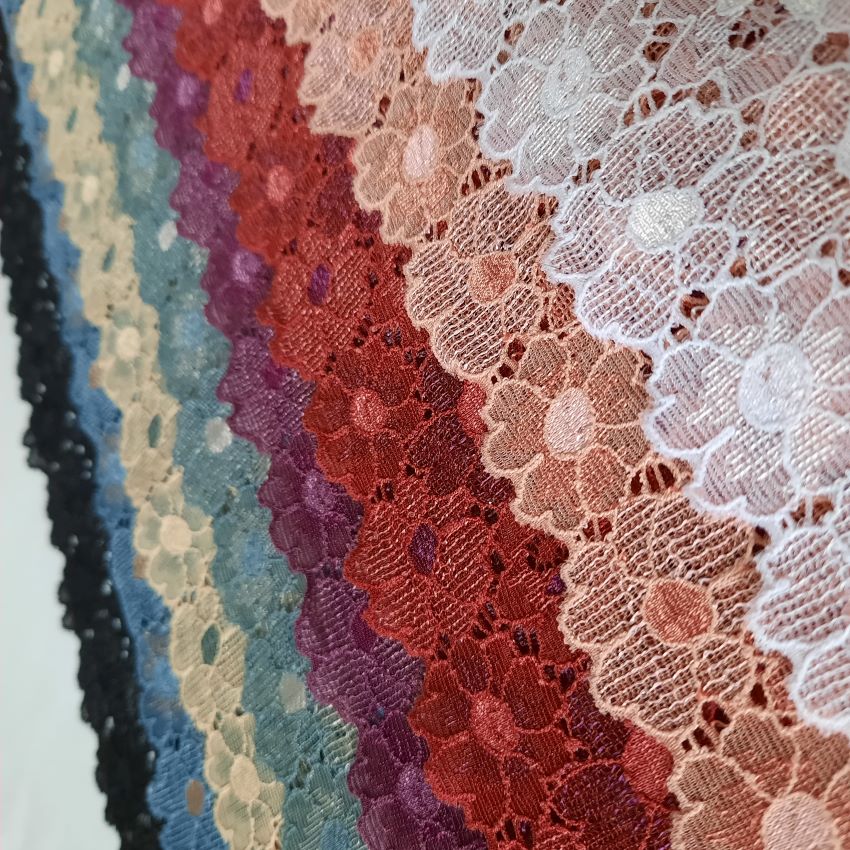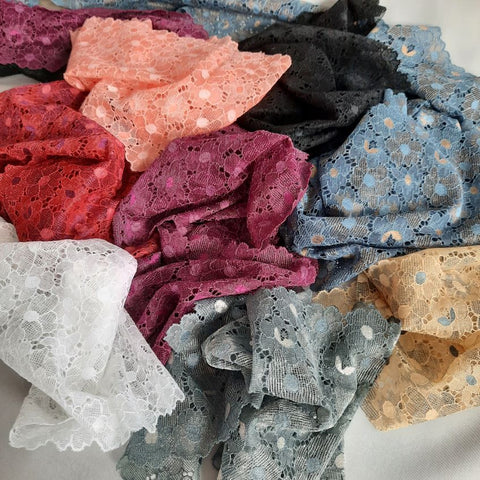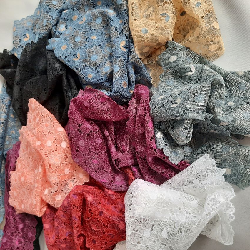 Depending on the quantity, lace fabrics will either be put onto a roll/spool and packed into cartons or, if the quantity is low, they may also be just folded and put into an envelope. The meterage per roll/spool varies depending on the width.