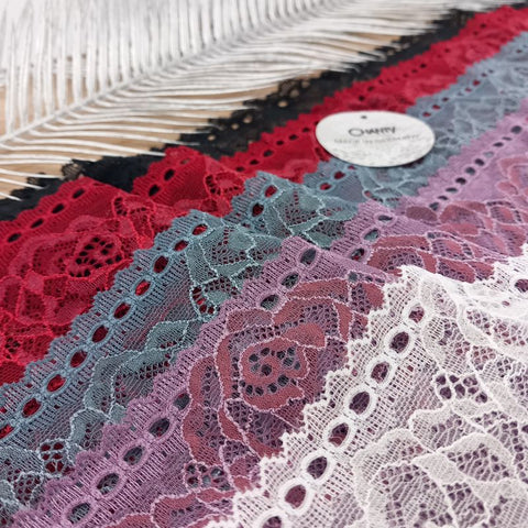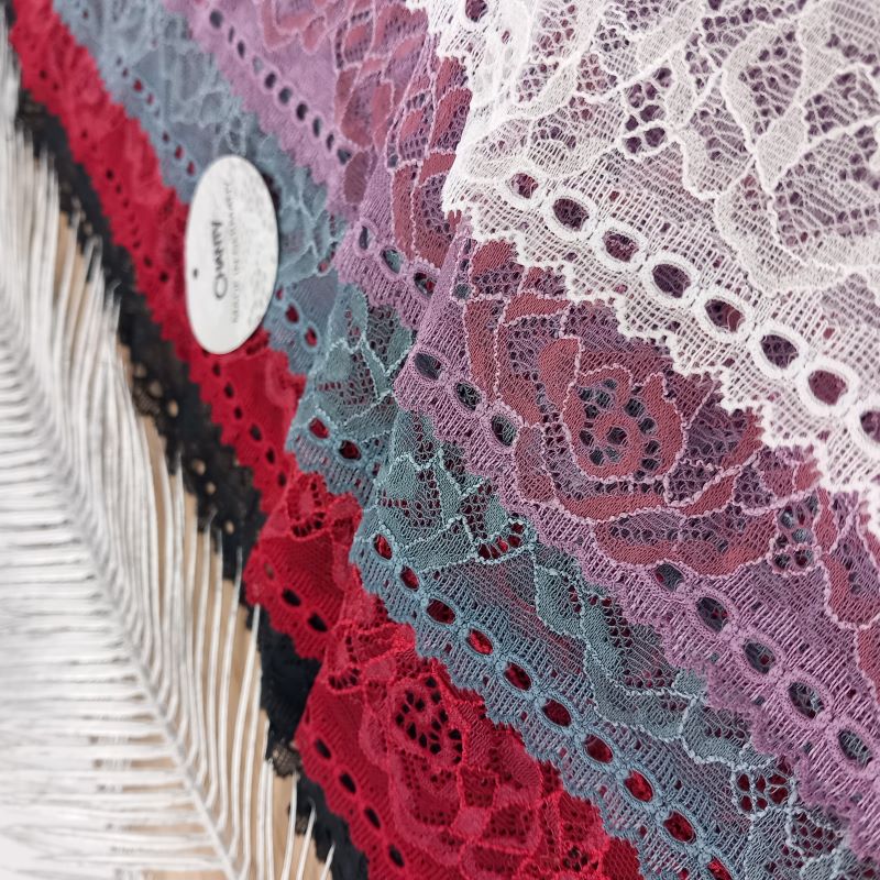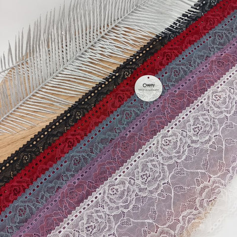 Depending on the quantity, lace fabrics will either be put onto a roll/spool and packed into cartons or, if the quantity is low, they may also be just folded and put into an envelope. The meterage per roll/spool varies depending on the width.
