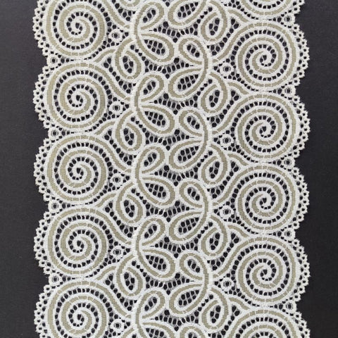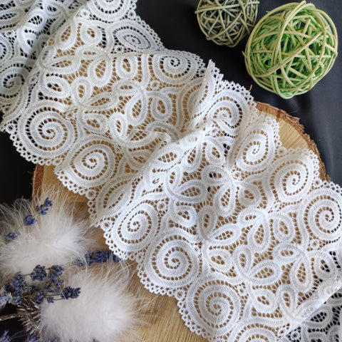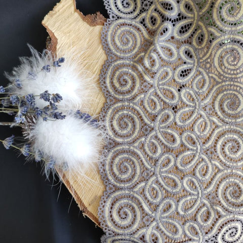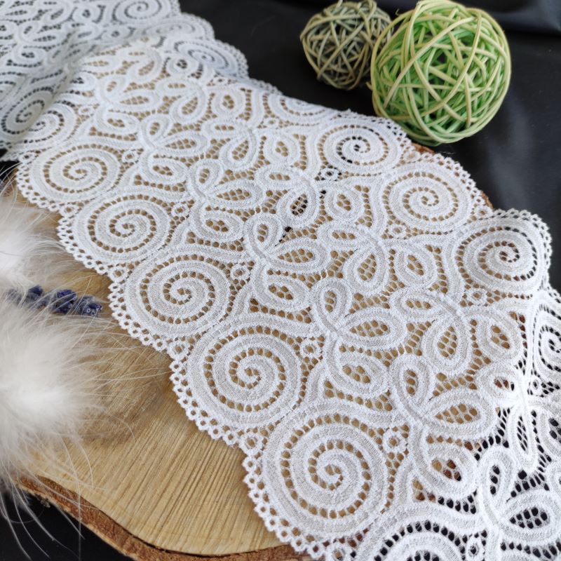Depending on the quantity, lace fabrics will either be put onto a roll/spool and packed into cartons or, if the quantity is low, they may also be just folded and put into an envelope. The meterage per roll/spool varies depending on the width.