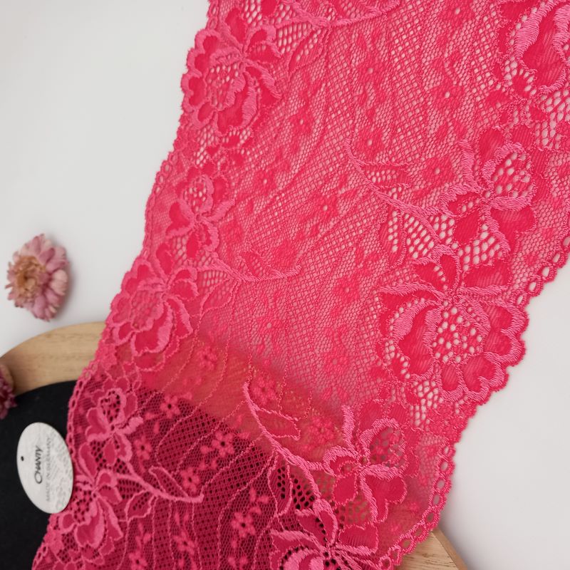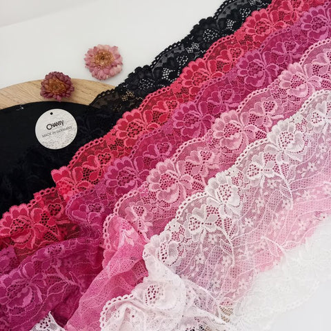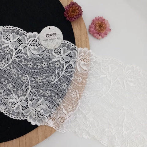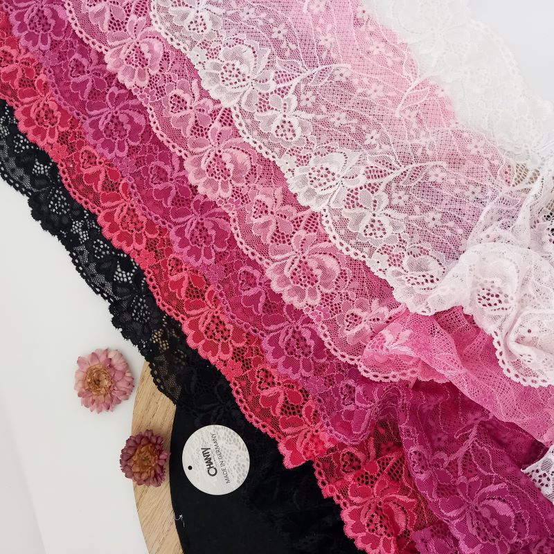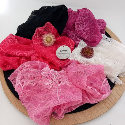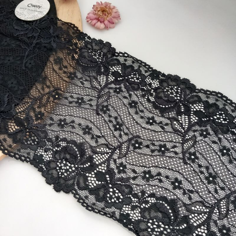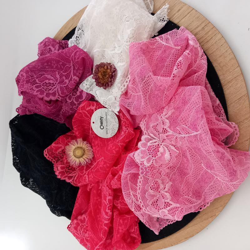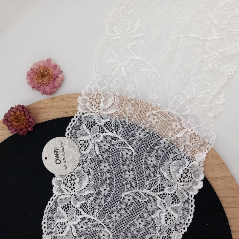 Depending on the quantity, lace fabrics will either be put onto a roll/spool and packed into cartons or, if the quantity is low, they may also be just folded and put into an envelope. The meterage per roll/spool varies depending on the width.