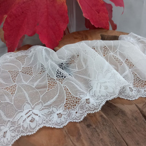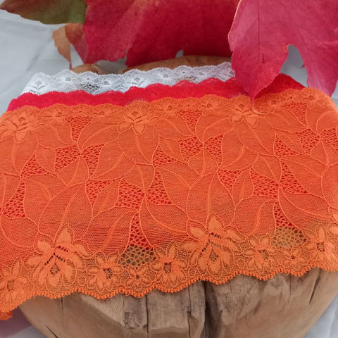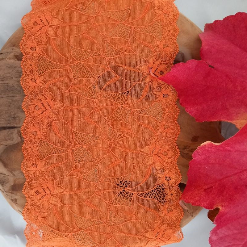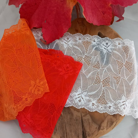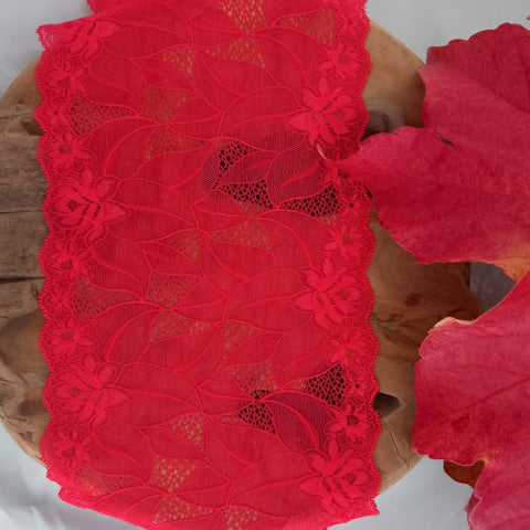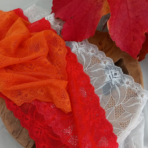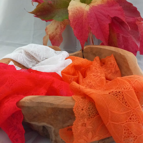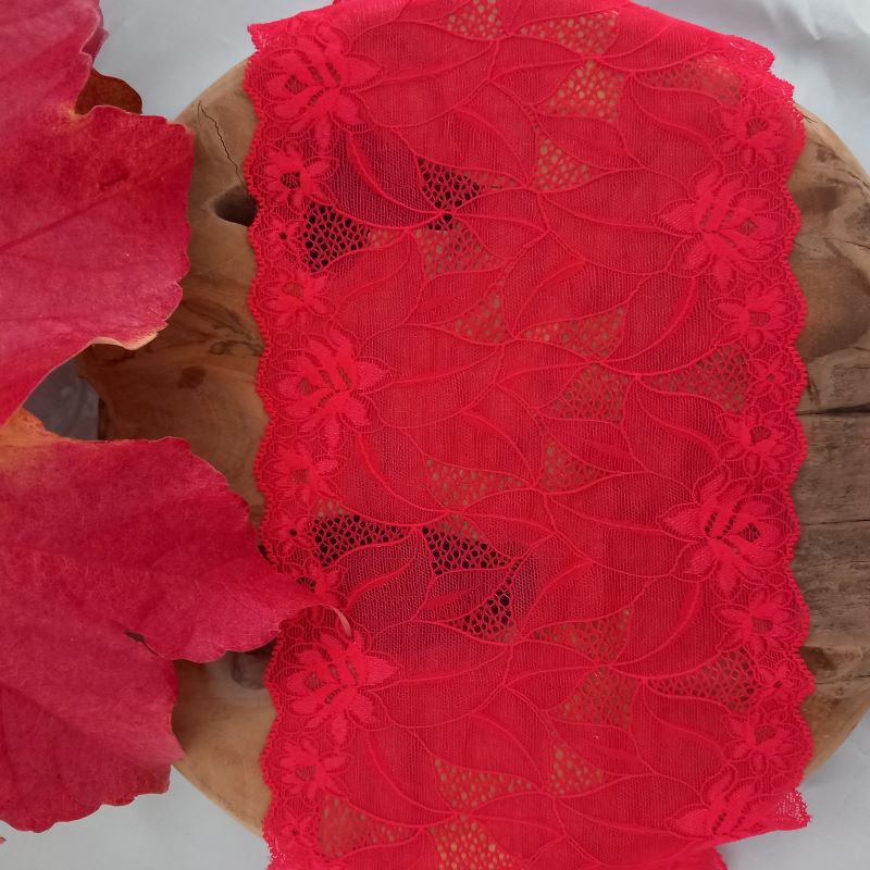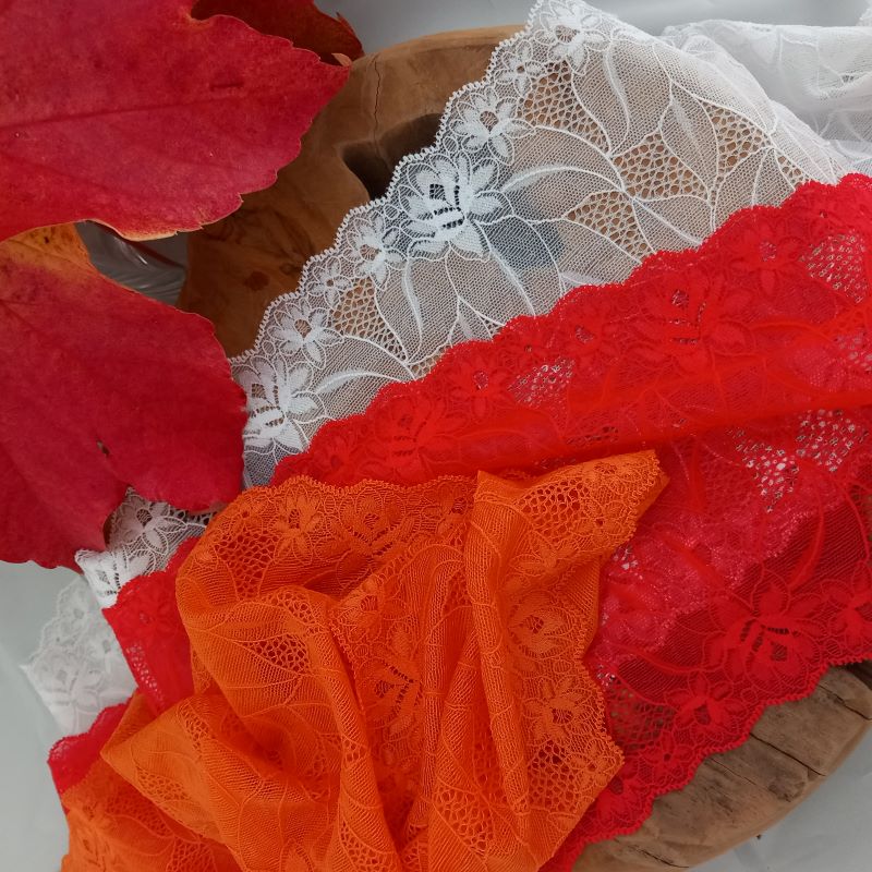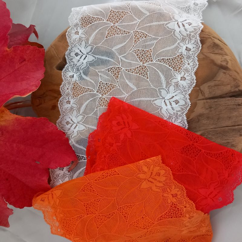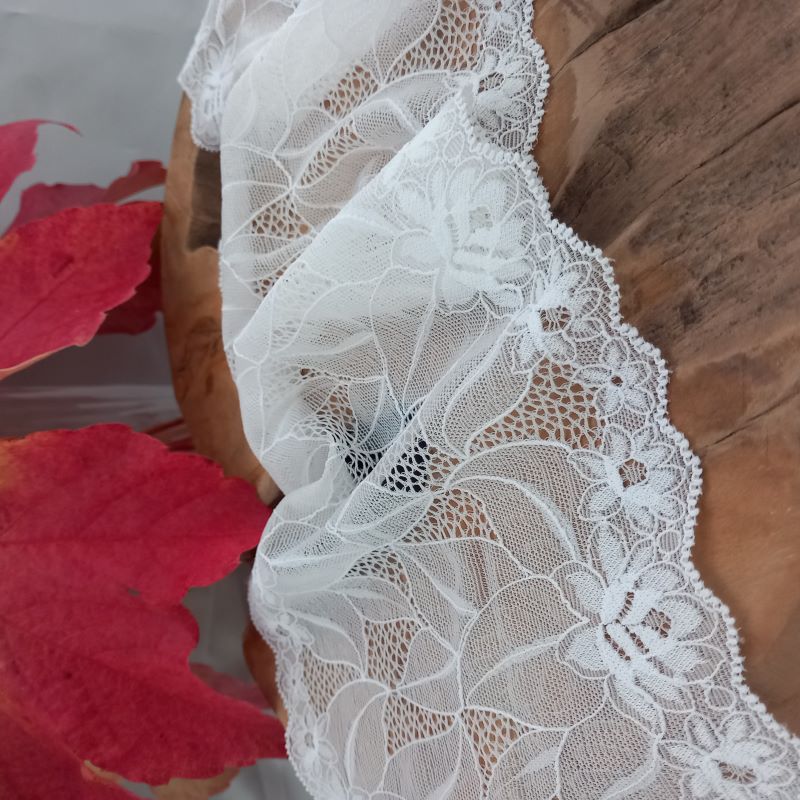 Depending on the quantity, lace fabrics will either be put onto a roll/spool and packed into cartons or, if the quantity is low, they may also be just folded and put into an envelope. The meterage per roll/spool varies depending on the width.