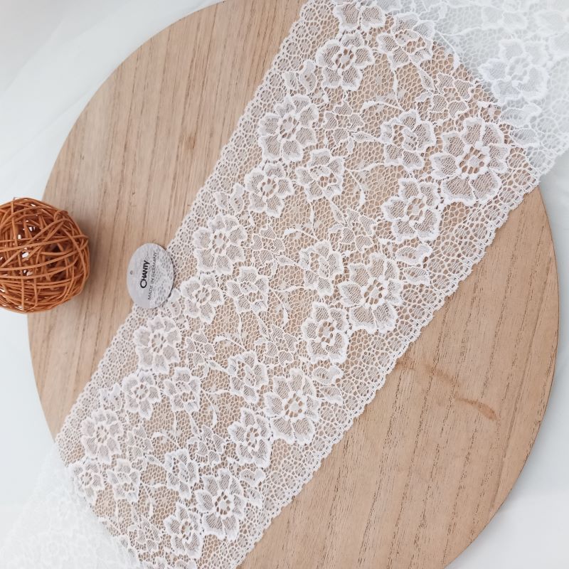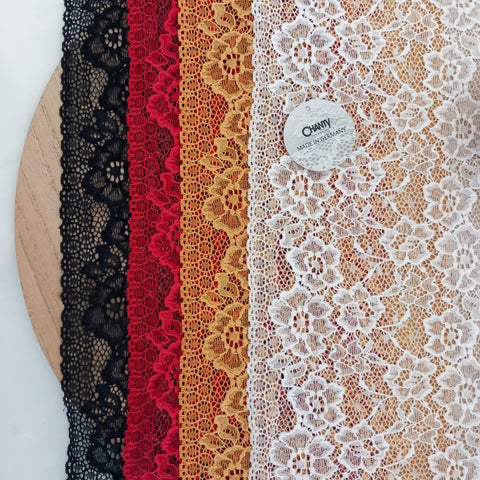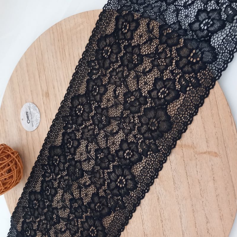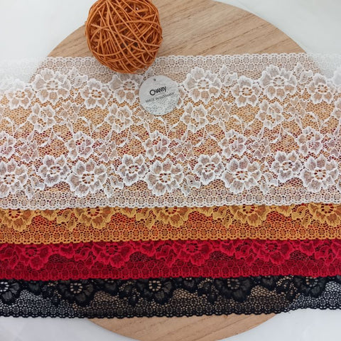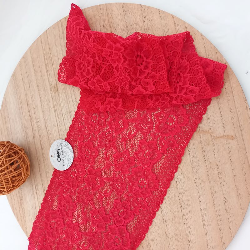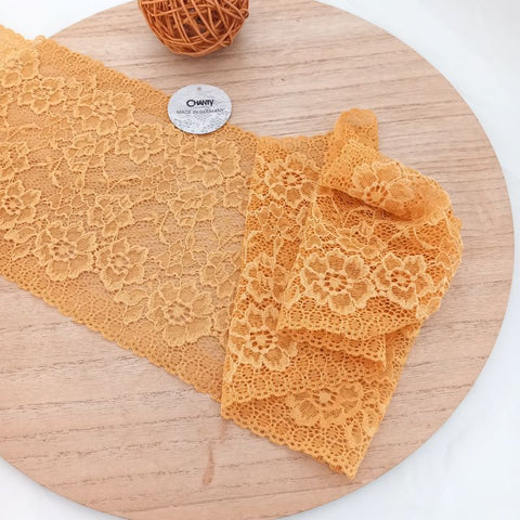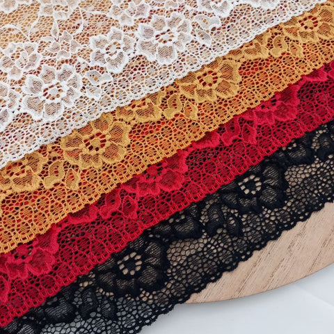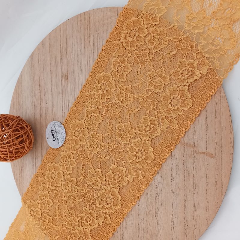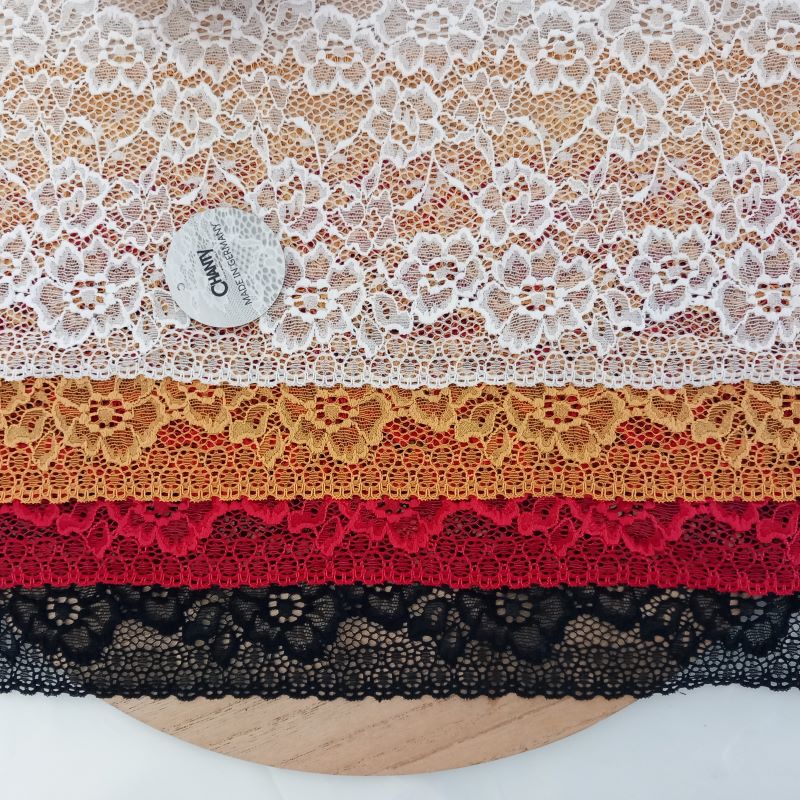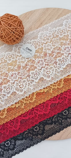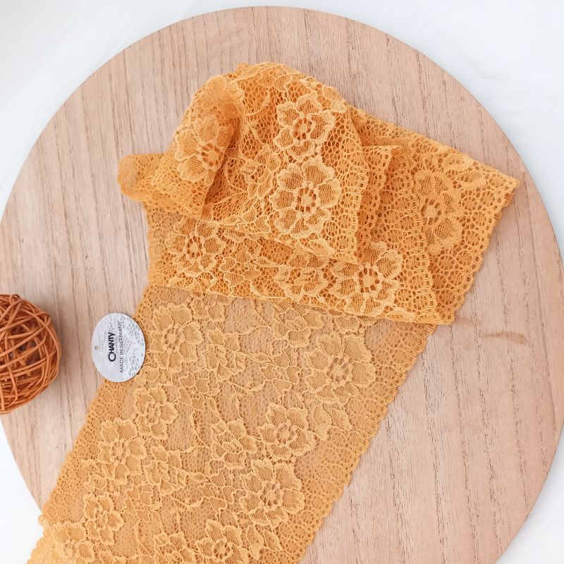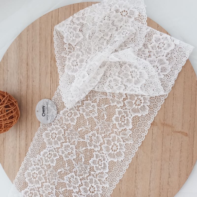 Depending on the quantity, lace fabrics will either be put onto a roll/spool and packed into cartons or, if the quantity is low, they may also be just folded and put into an envelope. The meterage per roll/spool varies depending on the width.