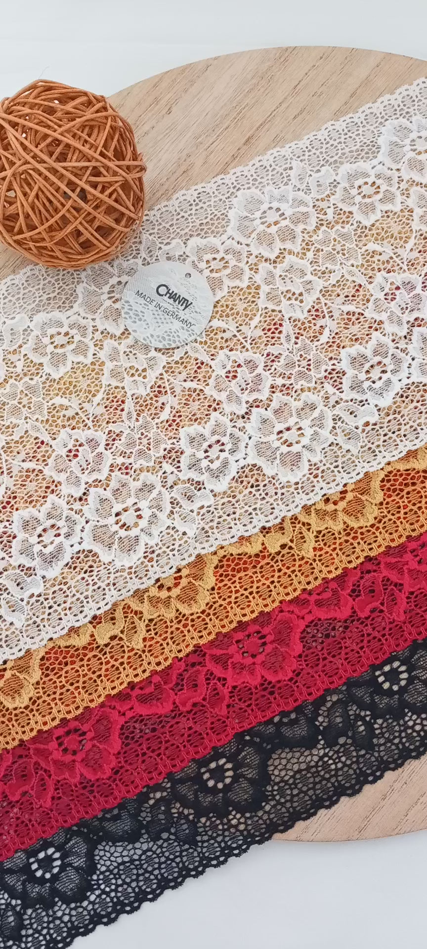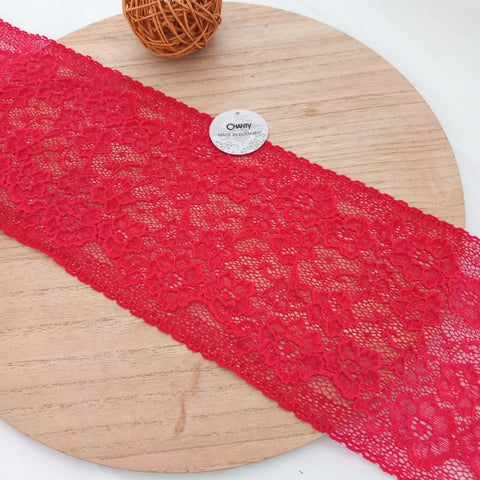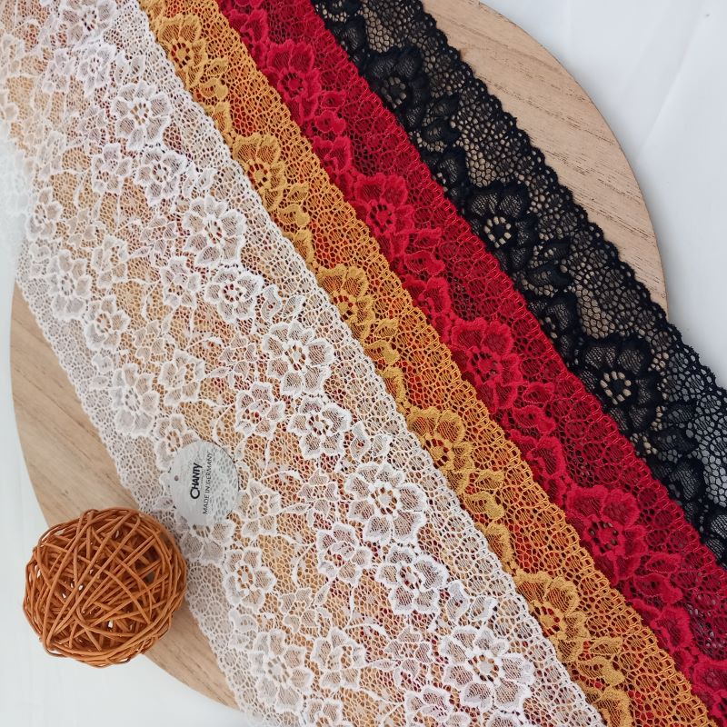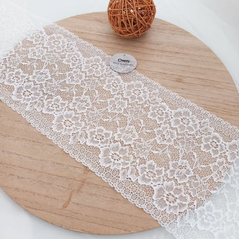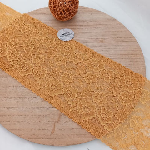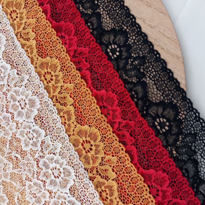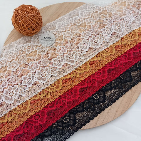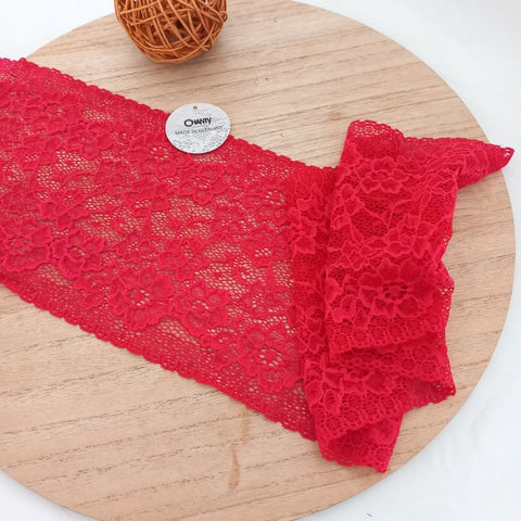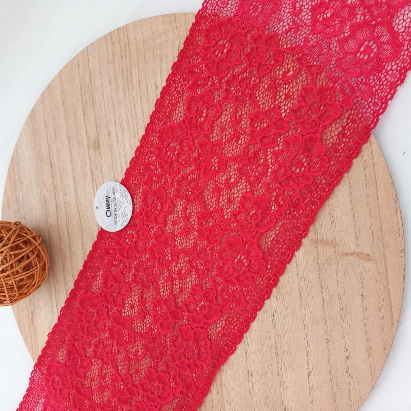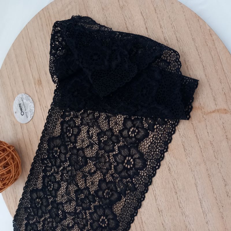 Depending on the quantity, lace fabrics will either be put onto a roll/spool and packed into cartons or, if the quantity is low, they may also be just folded and put into an envelope. The meterage per roll/spool varies depending on the width.