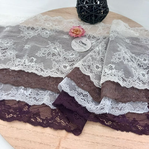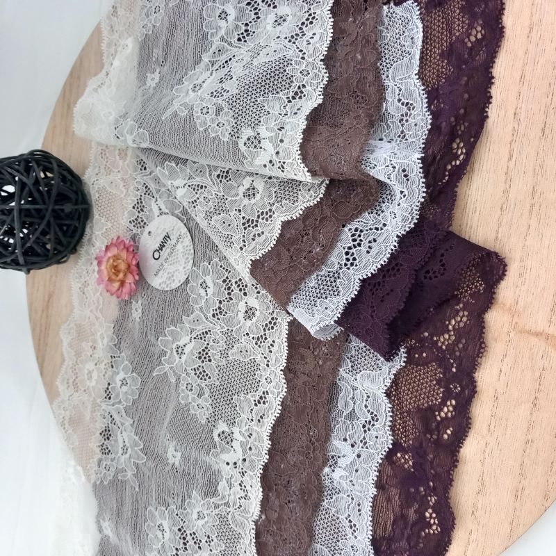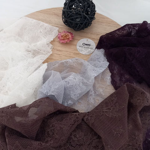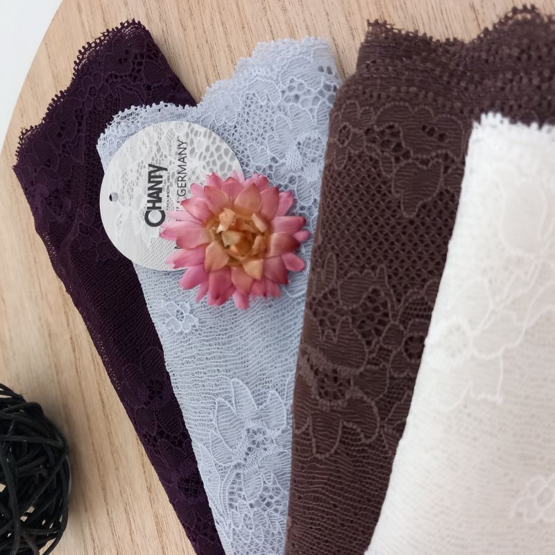 Depending on the quantity, lace fabrics will either be put onto a roll/spool and packed into cartons or, if the quantity is low, they may also be just folded and put into an envelope. The meterage per roll/spool varies depending on the width.