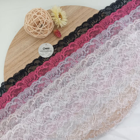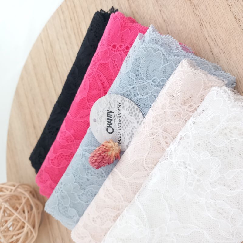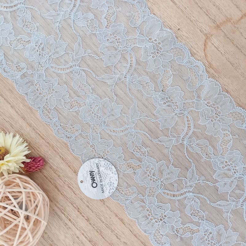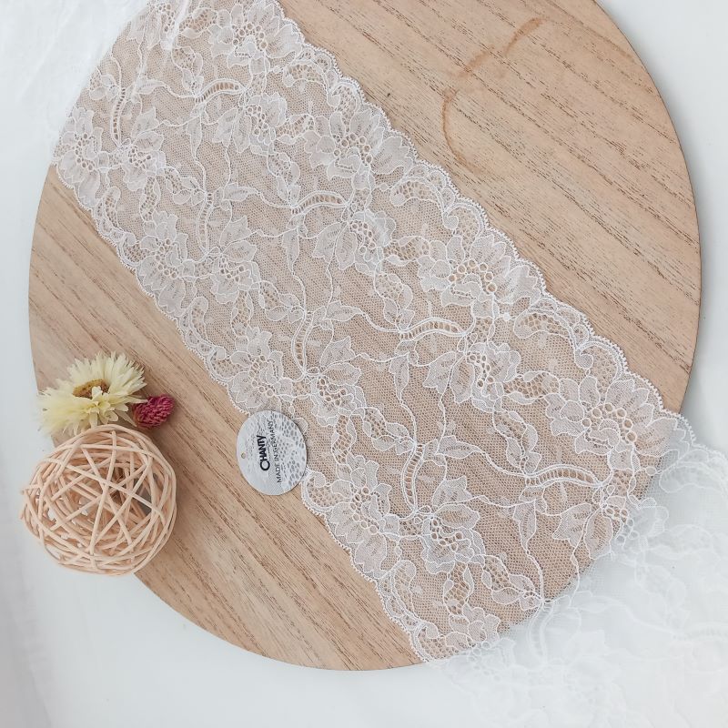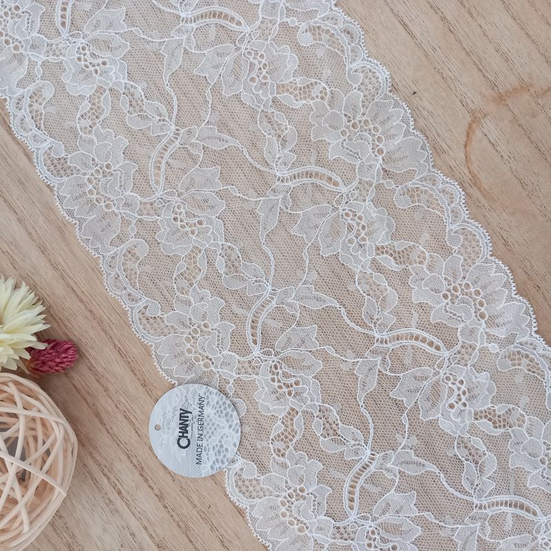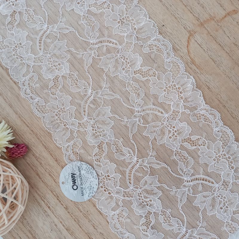 Depending on the quantity, lace fabrics will either be put onto a roll/spool and packed into cartons or, if the quantity is low, they may also be just folded and put into an envelope. The meterage per roll/spool varies depending on the width.