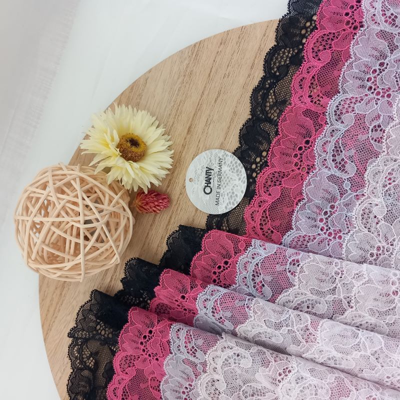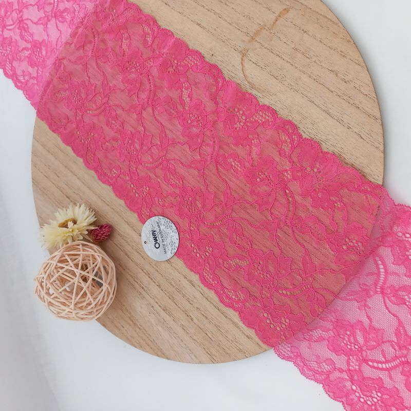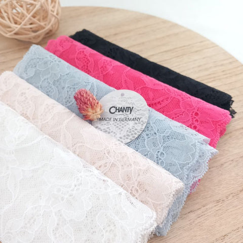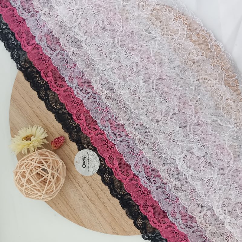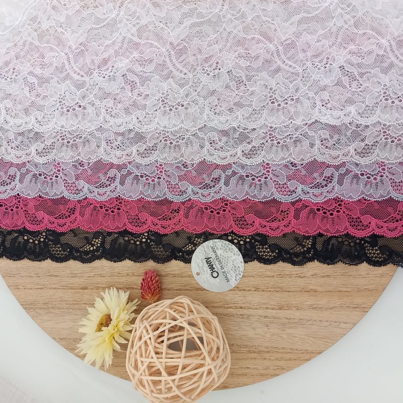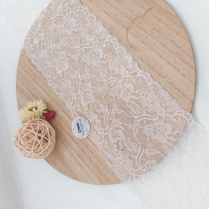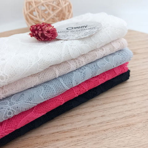 Depending on the quantity, lace fabrics will either be put onto a roll/spool and packed into cartons or, if the quantity is low, they may also be just folded and put into an envelope. The meterage per roll/spool varies depending on the width.