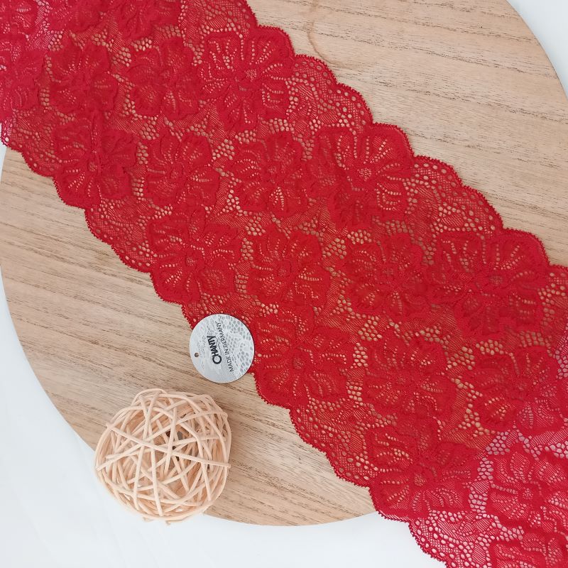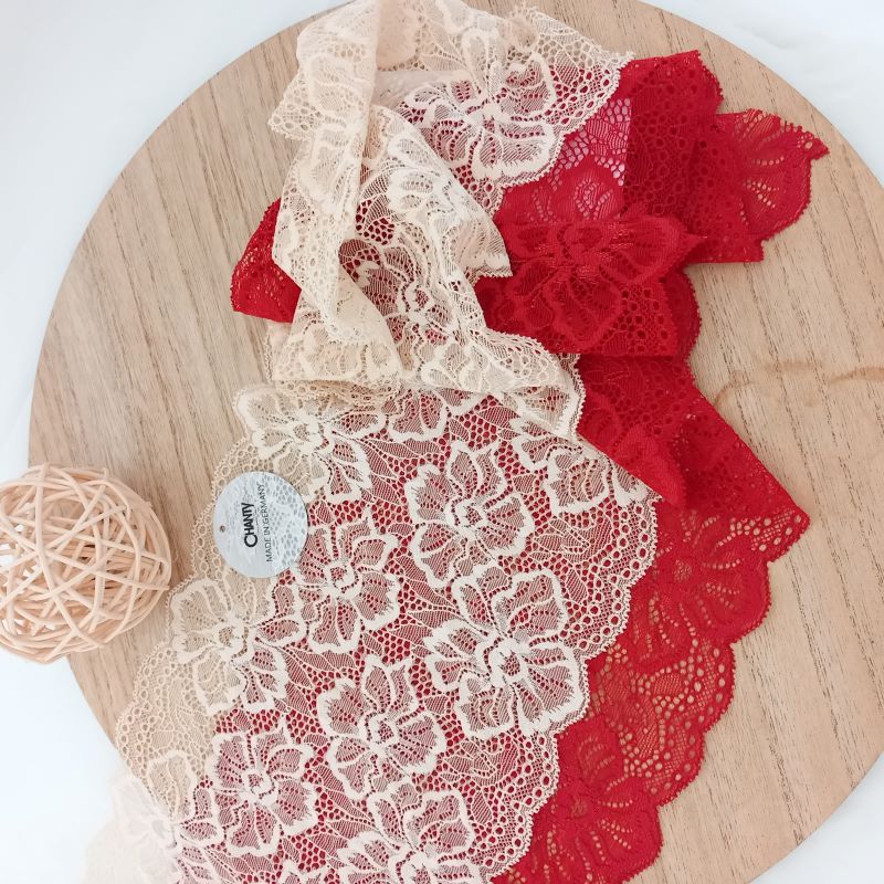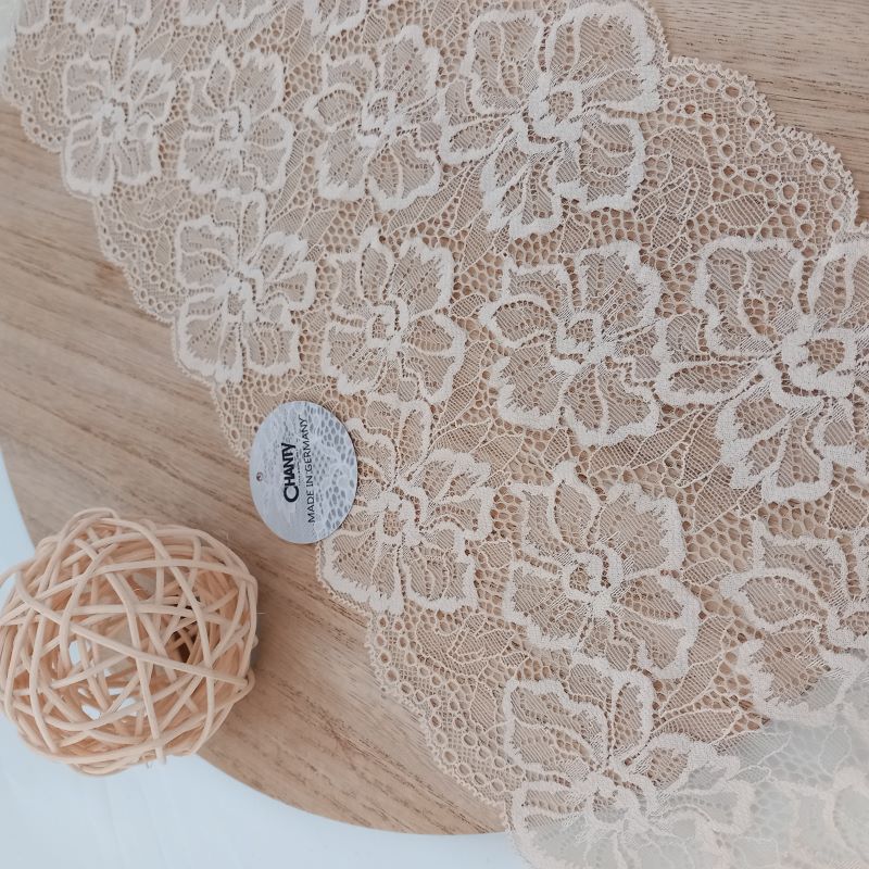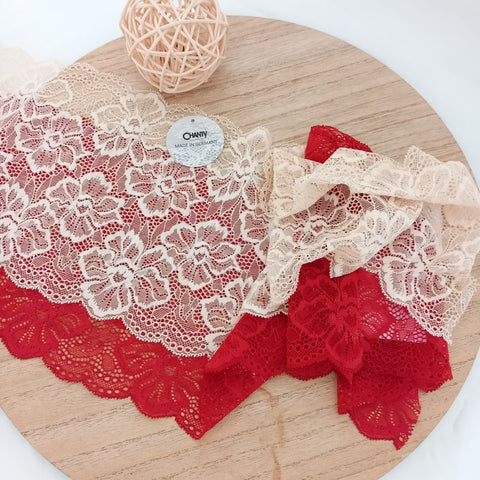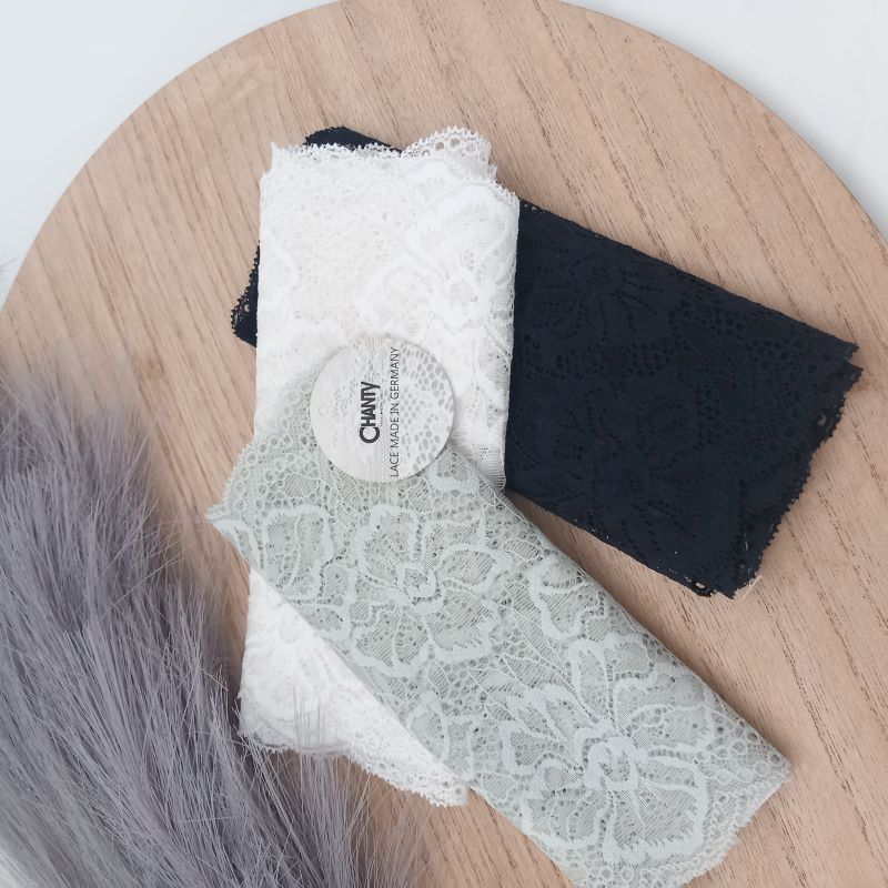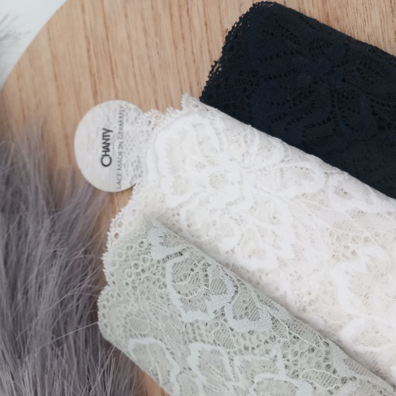 Depending on the quantity, lace fabrics will either be put onto a roll/spool and packed into cartons or, if the quantity is low, they may also be just folded and put into an envelope. The meterage per roll/spool varies depending on the width.