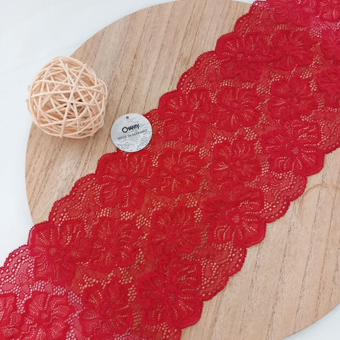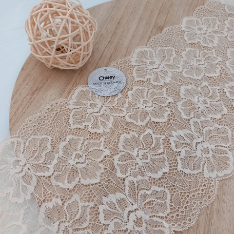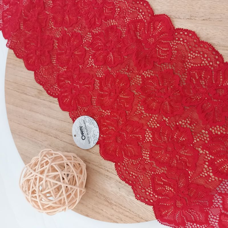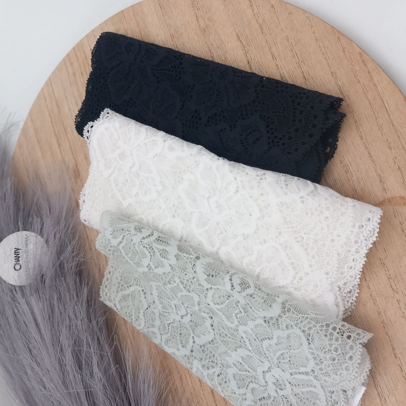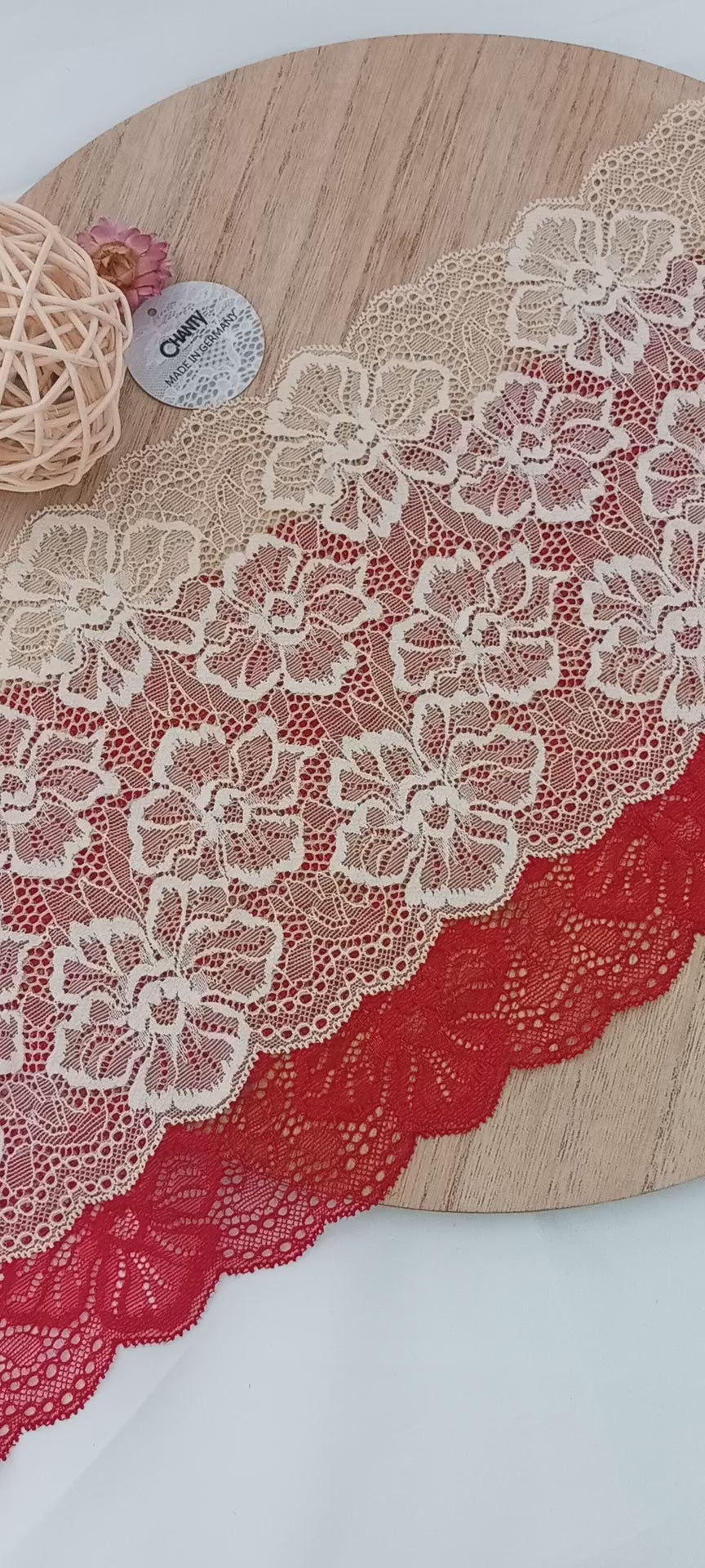 Depending on the quantity, lace fabrics will either be put onto a roll/spool and packed into cartons or, if the quantity is low, they may also be just folded and put into an envelope. The meterage per roll/spool varies depending on the width.