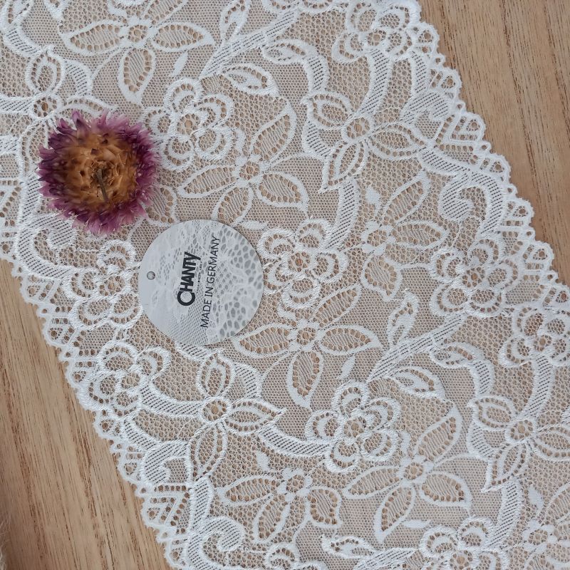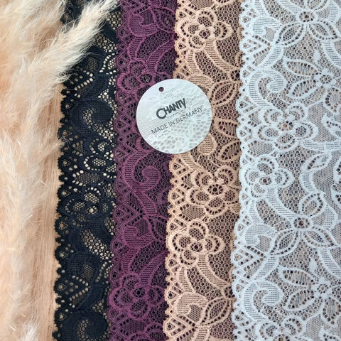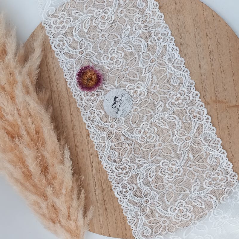 Depending on the quantity, lace fabrics will either be put onto a roll/spool and packed into cartons or, if the quantity is low, they may also be just folded and put into an envelope. The meterage per roll/spool varies depending on the width.