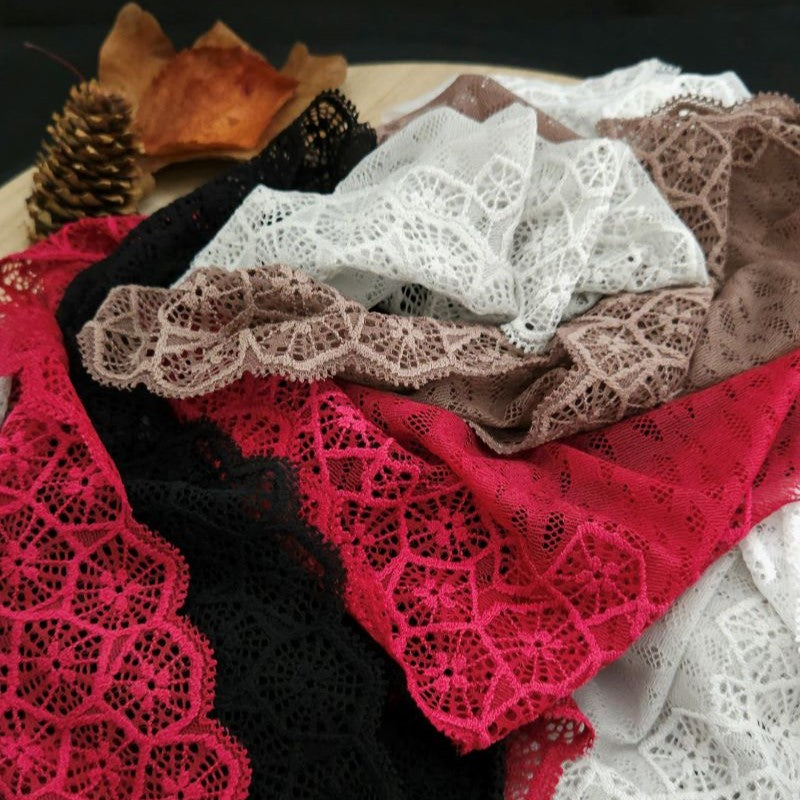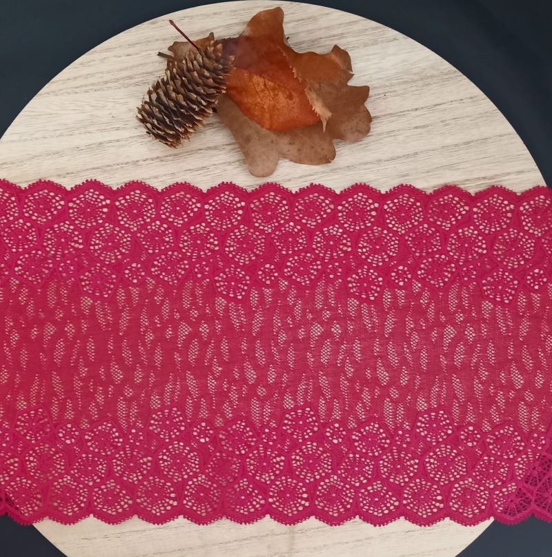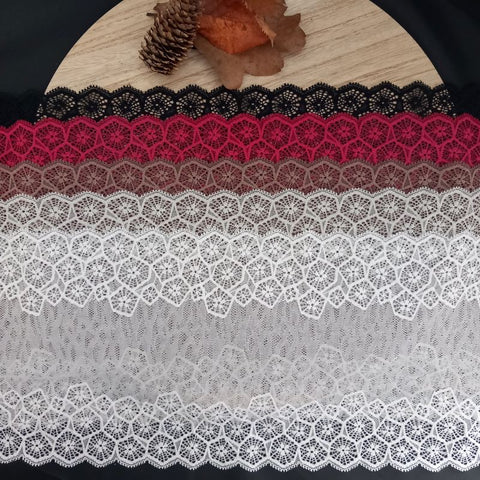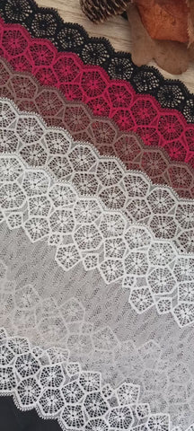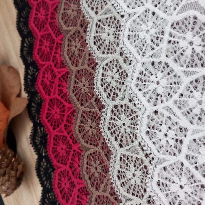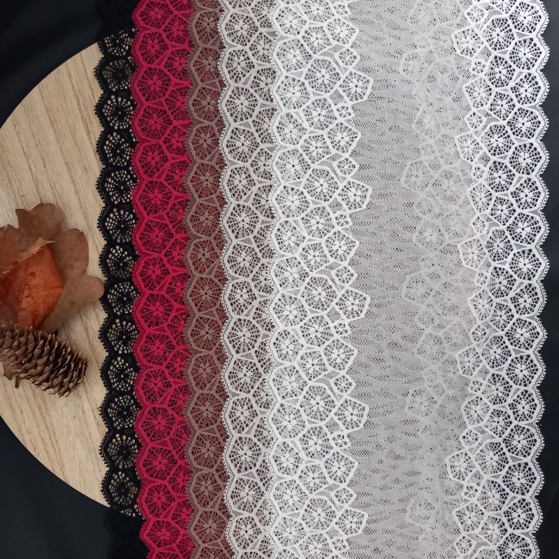 Depending on the quantity, lace fabrics will either be put onto a roll/spool and packed into cartons or, if the quantity is low, they may also be just folded and put into an envelope. The meterage per roll/spool varies depending on the width.