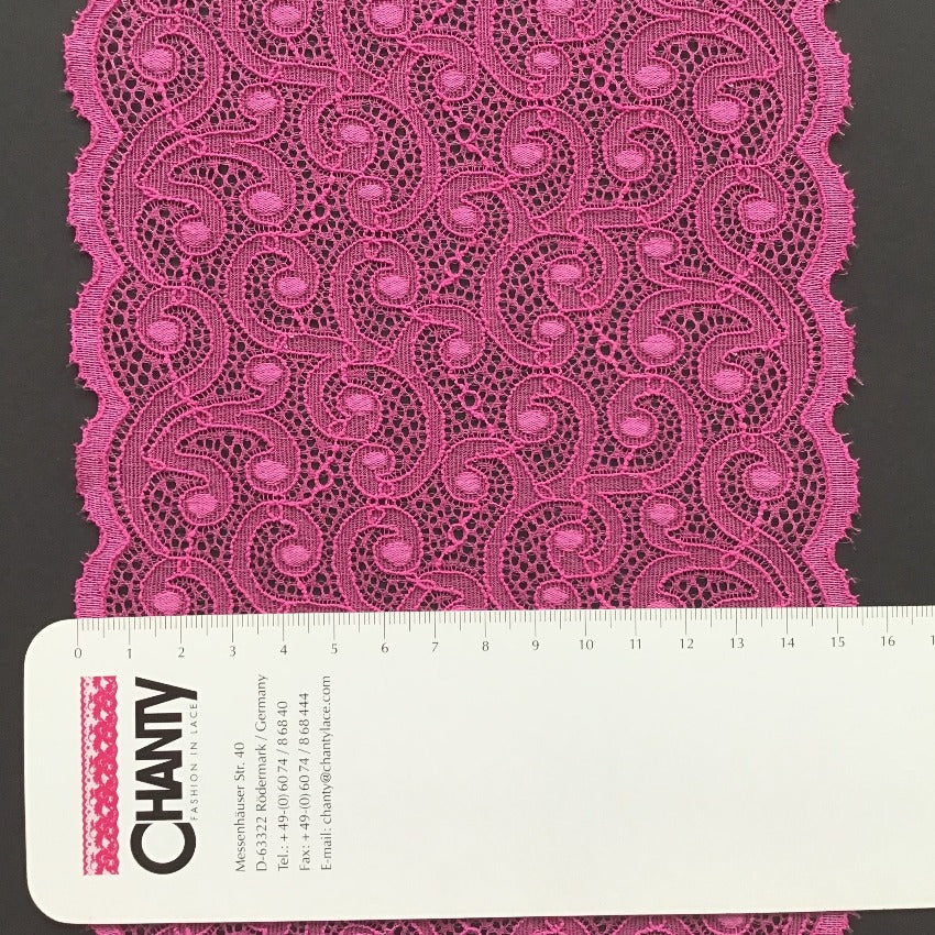 Depending on the quantity, lace fabrics will either be put onto a roll/spool and packed into cartons or, if the quantity is low, they may also be just folded and put into an envelope. The meterage per roll/spool varies depending on the width.
