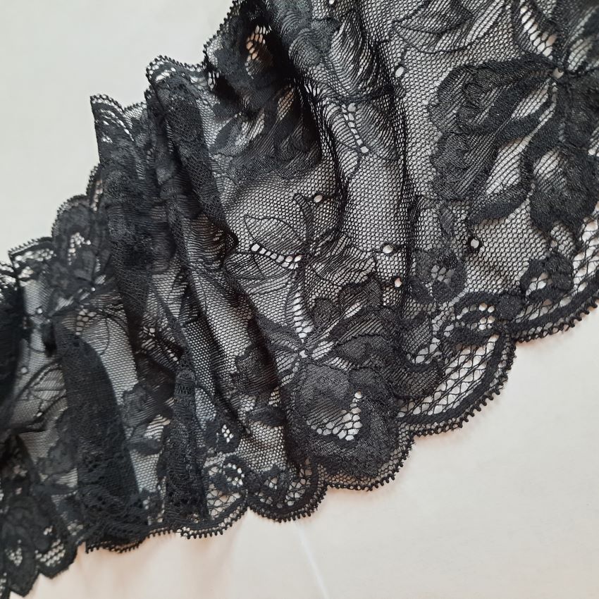 Depending on the quantity, lace fabrics will either be put onto a roll/spool and packed into cartons or, if the quantity is low, they may also be just folded and put into an envelope. The meterage per roll/spool varies depending on the width.