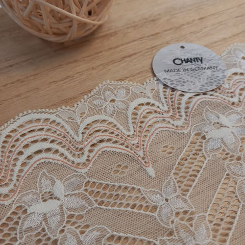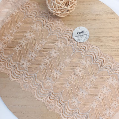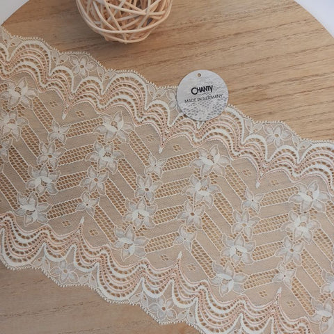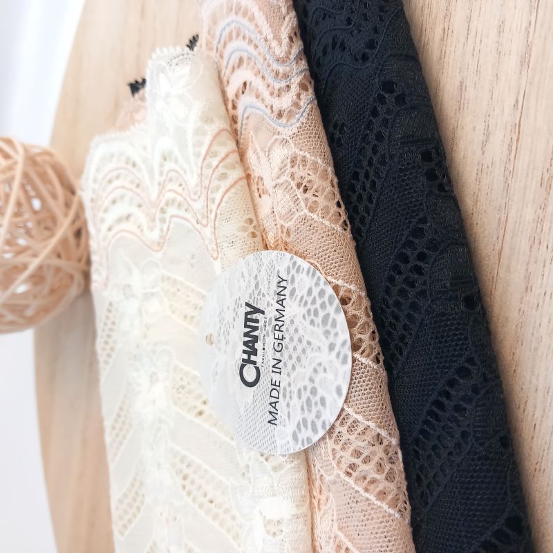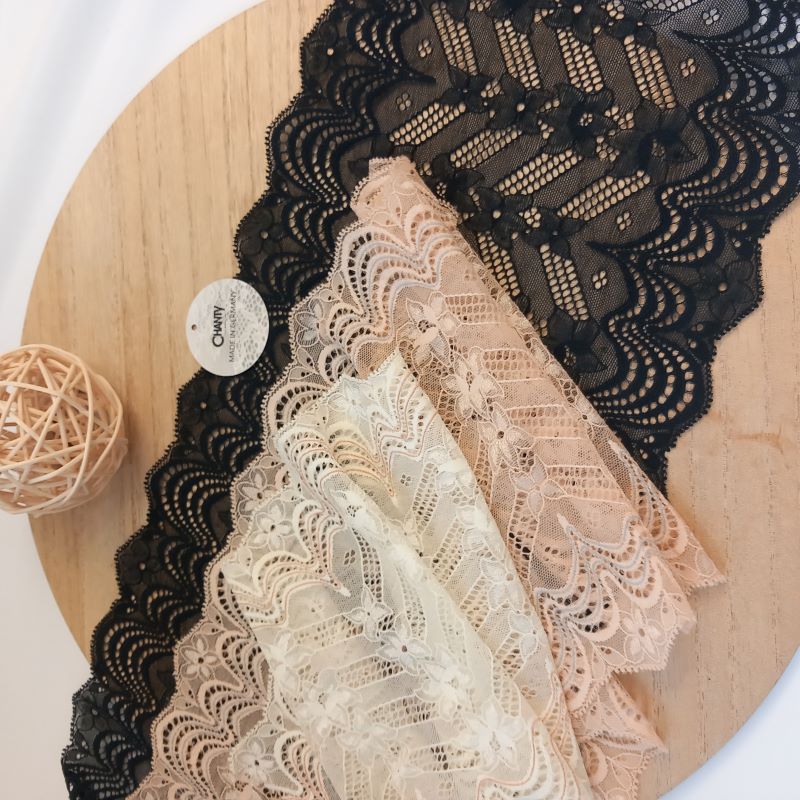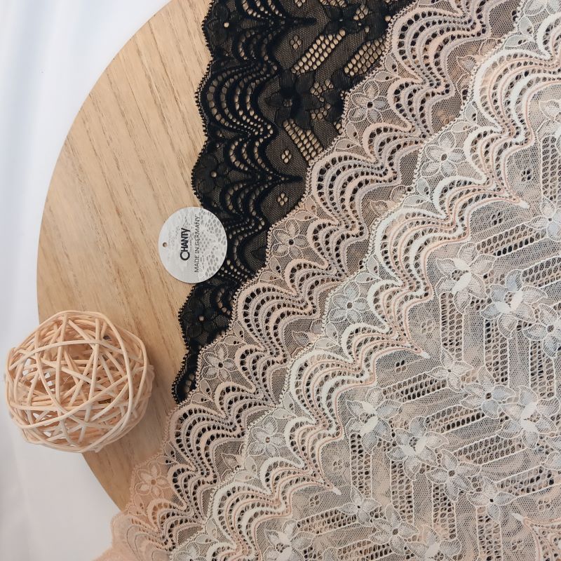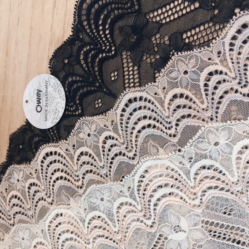 Depending on the quantity, lace fabrics will either be put onto a roll/spool and packed into cartons or, if the quantity is low, they may also be just folded and put into an envelope. The meterage per roll/spool varies depending on the width.