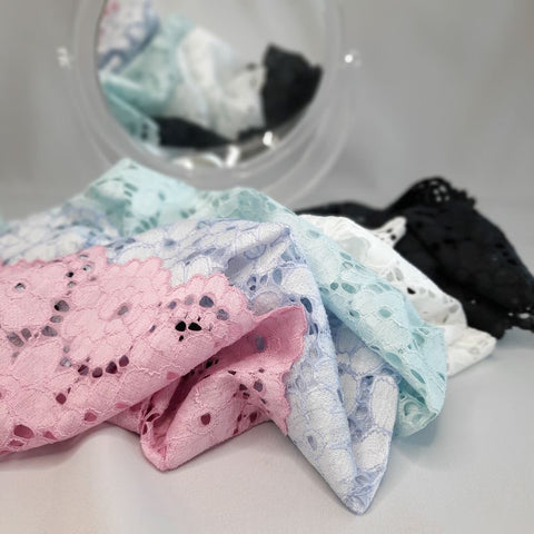 Please note that although we do our best to represent our lace stock and colors with as accurately as possible, both in descriptions and imagery, colors may vary according to factors such as florescent lighting or the settings of your computer screen and can therefore only be an approximation of the actual product.