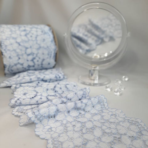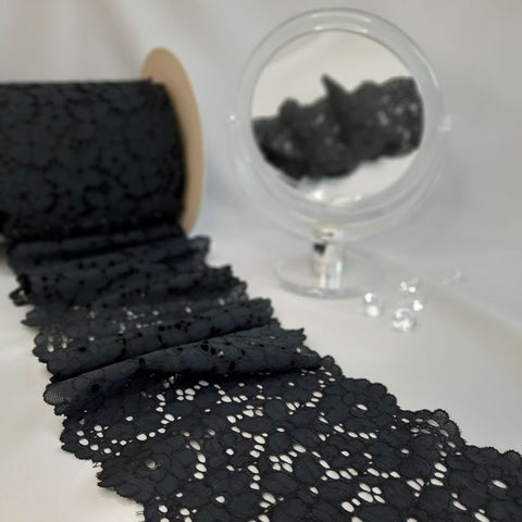 Depending on the quantity, lace fabrics will either be put onto a roll/spool and packed into cartons or, if the quantity is low, they may also be just folded and put into an envelope. The meterage per roll/spool varies depending on the width.