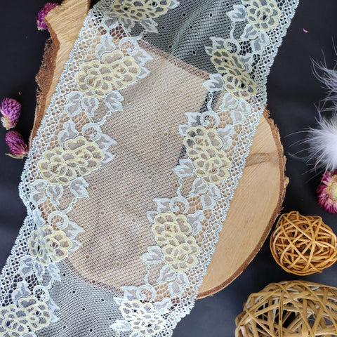 Lace TypeGalloon Laces are distinguished by having scallops or having other shape designs on both edges. They are mostly symmetrical and available in many widths, making them one of the most versatile lace types. These laces are usually elastic and stretchy. So you want to use some lace for something? Get yourself some Galloon laces! |