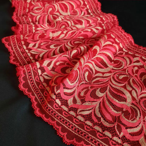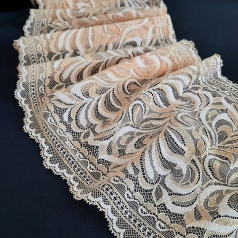 Depending on the quantity, lace fabrics will either be put onto a roll/spool and packed into cartons or, if the quantity is low, they may also be just folded and put into an envelope. The meterage per roll/spool varies depending on the width.