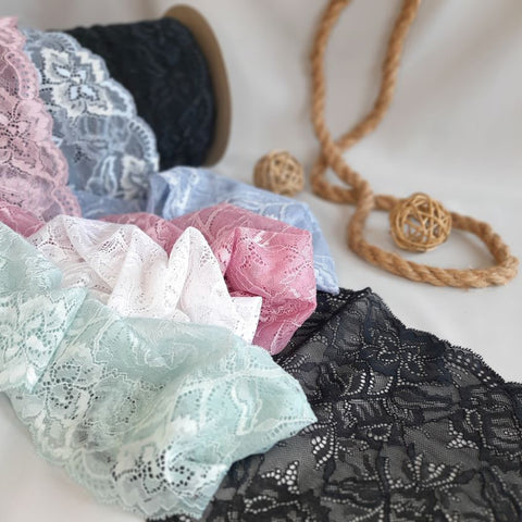 Lace TypeGalloon Laces are distinguished by having scallops or having other shape designs on both edges. They are mostly symmetrical and available in many widths, making them one of the most versatile lace types. These laces are usually elastic and stretchy. So you want to use some lace for something? Get yourself some Galloon laces! |