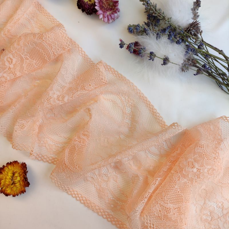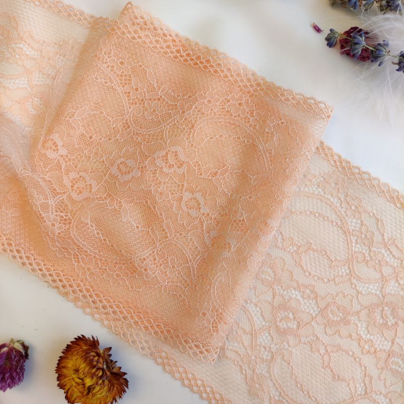 Depending on the quantity, lace fabrics will either be put onto a roll/spool and packed into cartons or, if the quantity is low, they may also be just folded and put into an envelope. The meterage per roll/spool varies depending on the width.