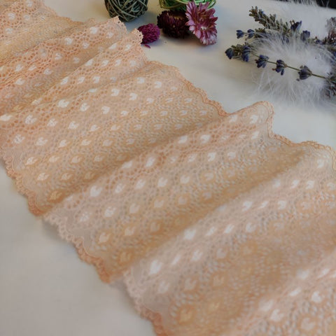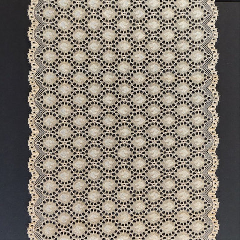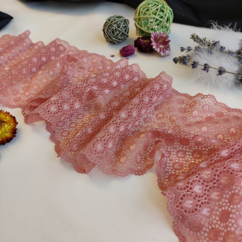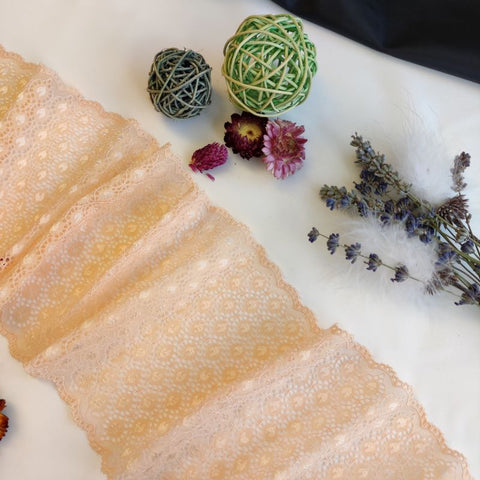 Lace TypeGalloon Laces are distinguished by having scallops or having other shape designs on both edges. They are mostly symmetrical and available in many widths, making them one of the most versatile lace types. These laces are usually elastic and stretchy. So you want to use some lace for something? Get yourself some Galloon laces! |