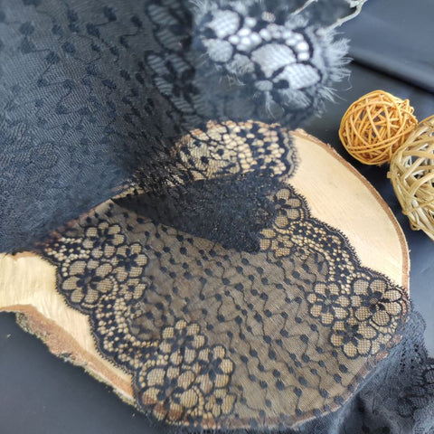 Lace TypeGalloon Laces are distinguished by having scallops or having other shape designs on both edges. They are mostly symmetrical and available in many widths, making them one of the most versatile lace types. These laces are usually elastic and stretchy. So you want to use some lace for something? Get yourself some Galloon laces! |