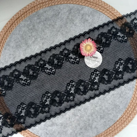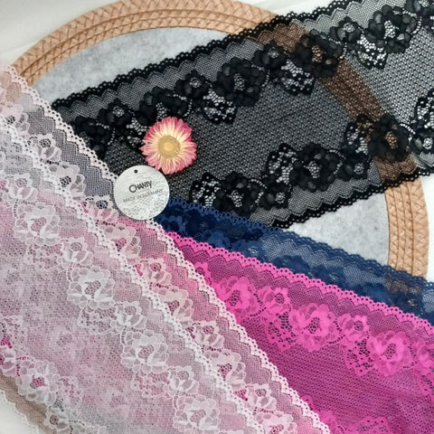 Lace TypeGalloon Laces are distinguished by having scallops or having other shape designs on both edges. They are mostly symmetrical and available in many widths, making them one of the most versatile lace types. These laces are usually elastic and stretchy. So you want to use some lace for something? Get yourself some Galloon laces! |