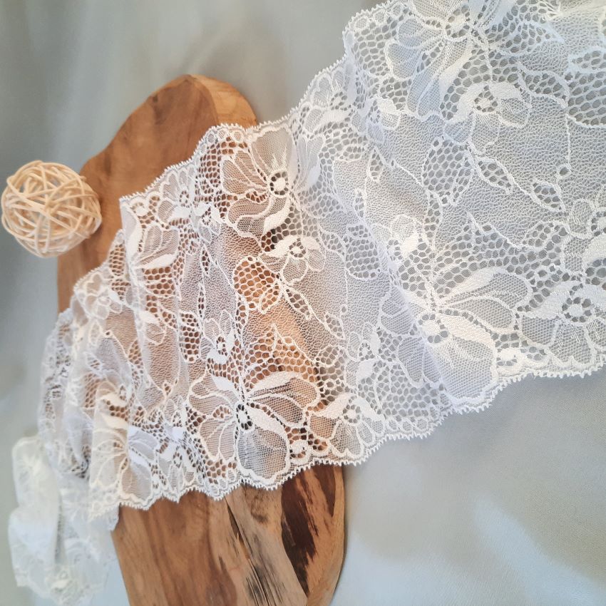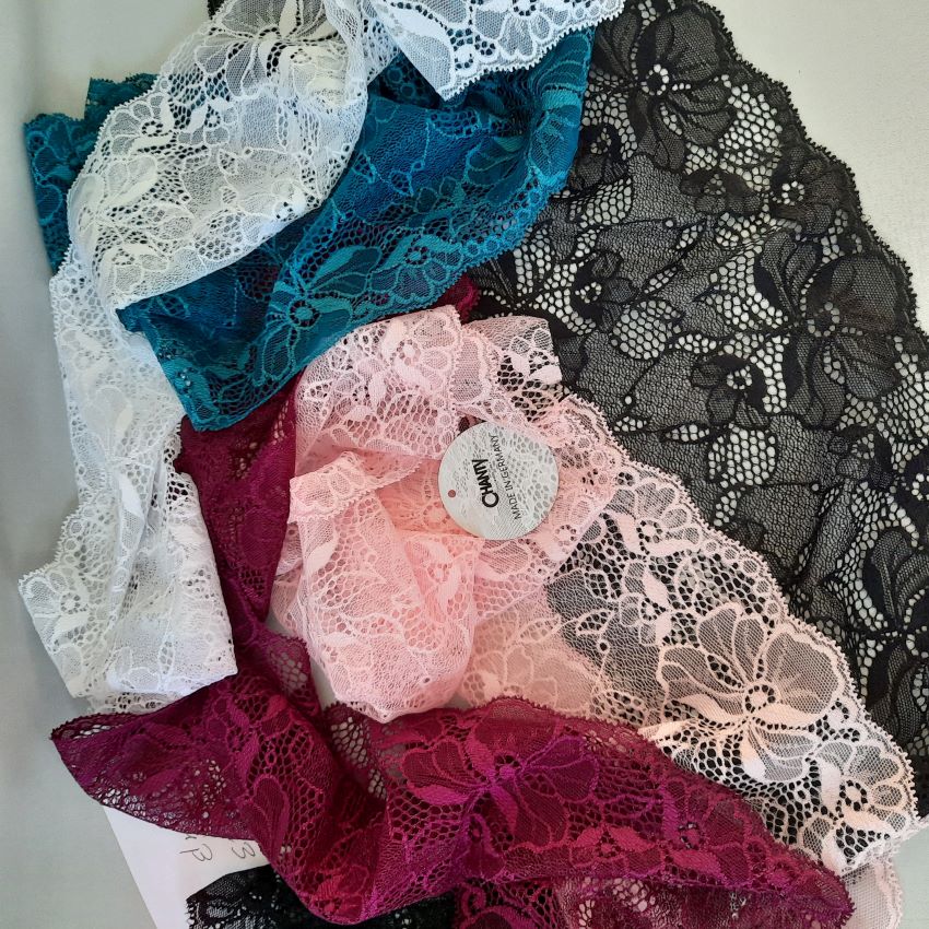 Depending on the quantity, lace fabrics will either be put onto a roll/spool and packed into cartons or, if the quantity is low, they may also be just folded and put into an envelope. The meterage per roll/spool varies depending on the width.