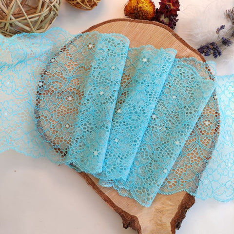 Depending on the quantity, lace fabrics will either be put onto a roll/spool and packed into cartons or, if the quantity is low, they may also be just folded and put into an envelope. The meterage per roll/spool varies depending on the width.