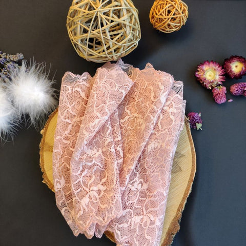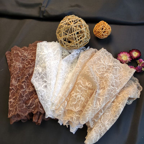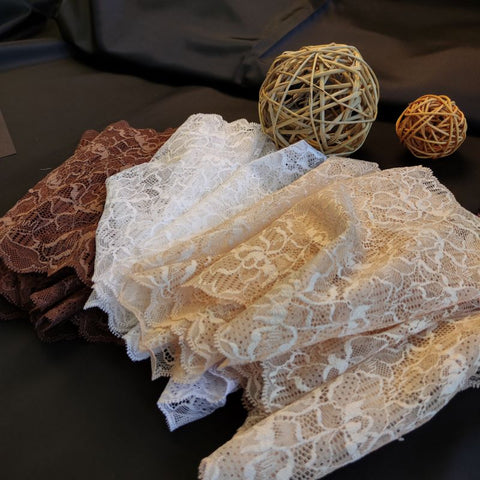 Lace TypeGalloon Laces are distinguished by having scallops or having other shape designs on both edges. They are mostly symmetrical and available in many widths, making them one of the most versatile lace types. These laces are usually elastic and stretchy. So you want to use some lace for something? Get yourself some Galloon laces! |