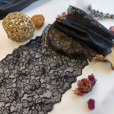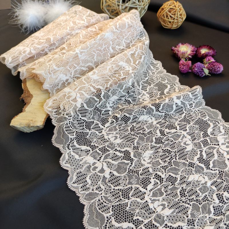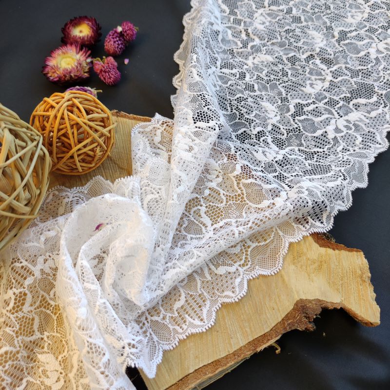 Depending on the quantity, lace fabrics will either be put onto a roll/spool and packed into cartons or, if the quantity is low, they may also be just folded and put into an envelope. The meterage per roll/spool varies depending on the width.