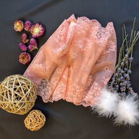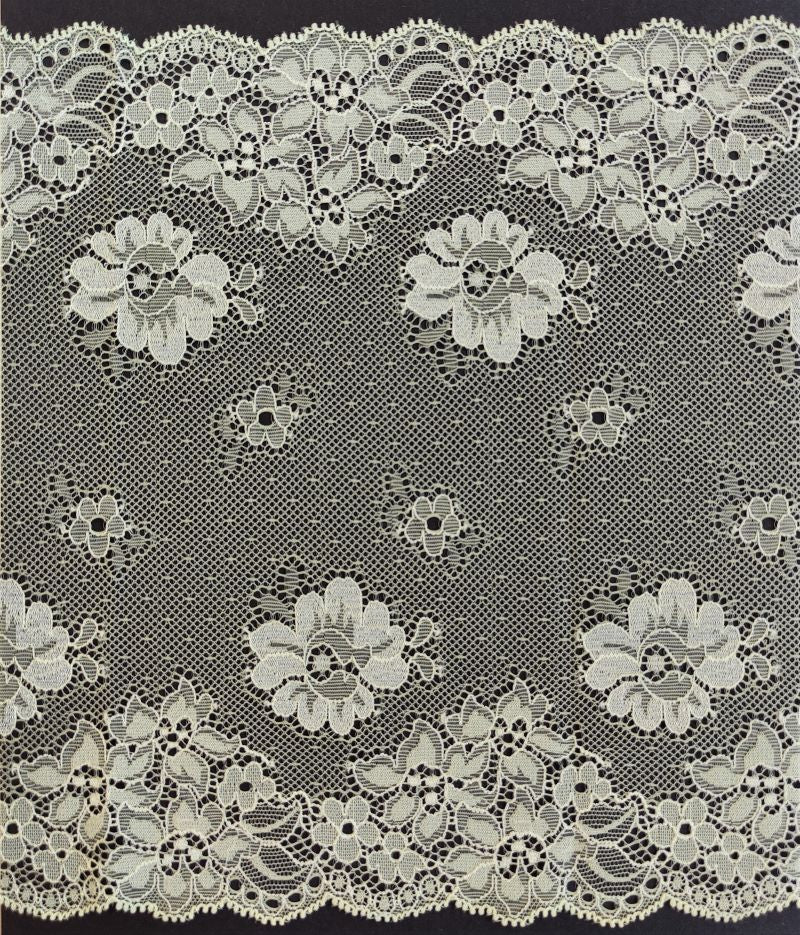 Depending on the quantity, lace fabrics will either be put onto a roll/spool and packed into cartons or, if the quantity is low, they may also be just folded and put into an envelope. The meterage per roll/spool varies depending on the width.