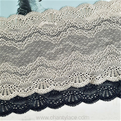 Lace TypeGalloon Laces are distinguished by having scallops or having other shape designs on both edges. They are mostly symmetrical and available in many widths, making them one of the most versatile lace types. These laces are usually elastic and stretchy. So you want to use some lace for something? Get yourself some Galloon laces! |