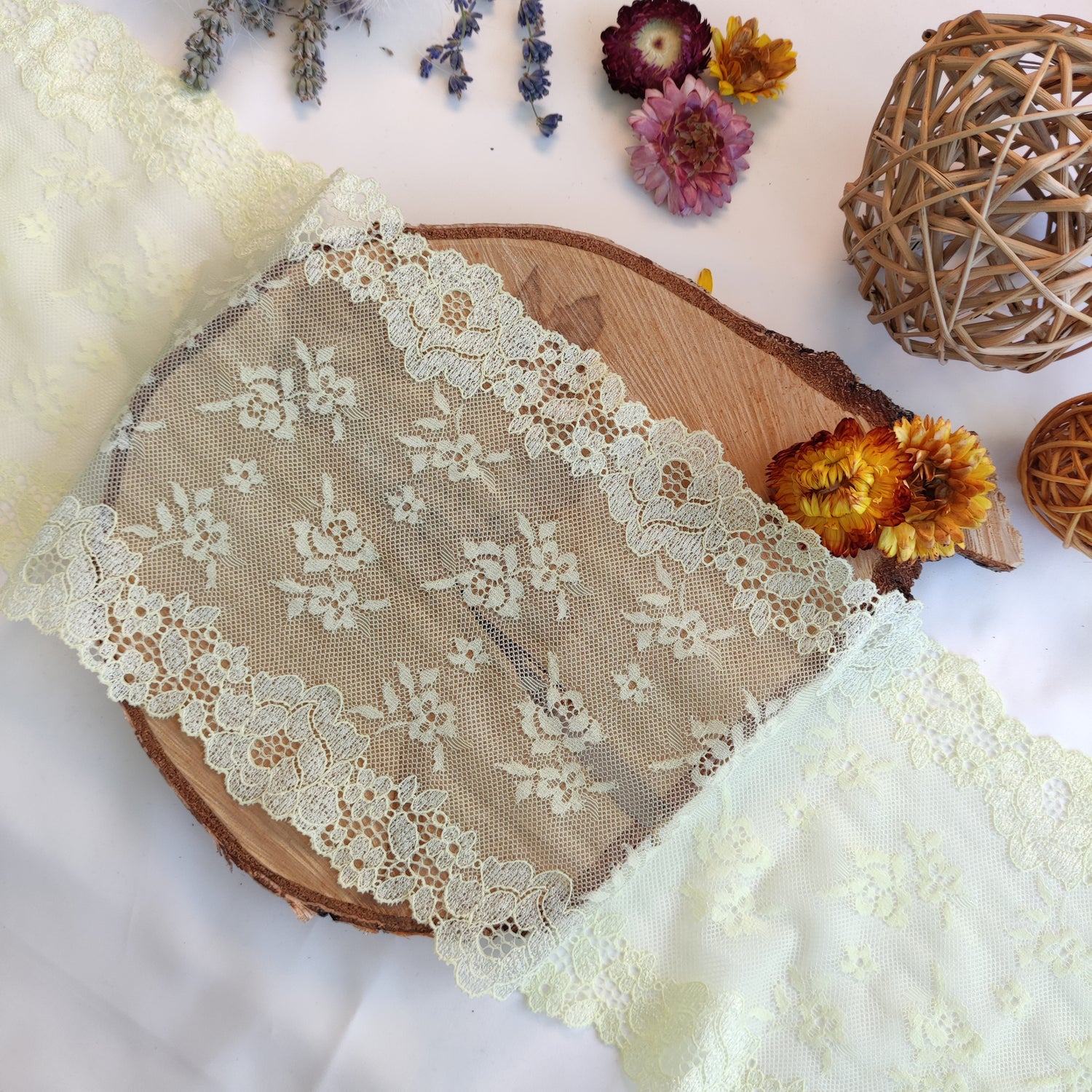 Depending on the quantity, lace fabrics will either be put onto a roll/spool and packed into cartons or, if the quantity is low, they may also be just folded and put into an envelope. The meterage per roll/spool varies depending on the width.